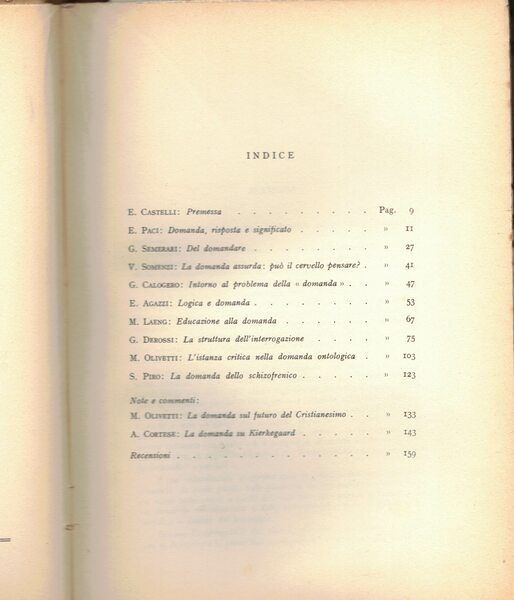 Il problema della domanda. Scritti di E. Castelli, E. Paci. G. Semerari. V. Somenzi. G. Calogero. E. Agazzi. M. Laeng. G. Derossi. M. Olivetti. S. Piro. A. Cortese