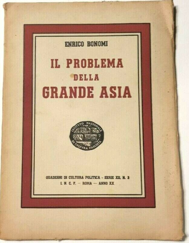IL PROBLEMA DELLA GRANDE ASIA di Enrico Bonomi. Quaderni di cultura politica, serie XII numero 3 I.N.C.F. 1942. 62 pagine. Copertina editoriale in brossura. Dimensioni 16,5x22 cm. Stato di conservazione: molto buono (pagine ingiallite, piccole imperfezioni alla copertina).
