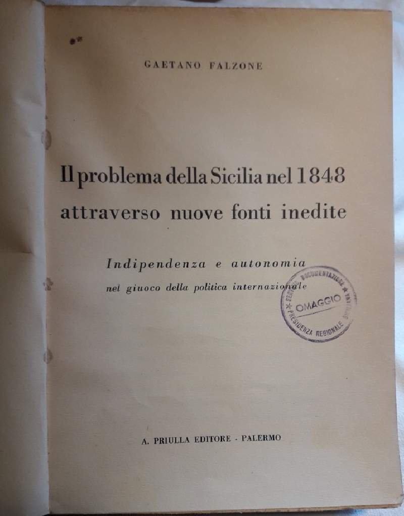 IL PROBLEMA DELLA SICILIA NEL 1848 ATTRAVERSO NUOVE FONTI INEDITE( 1951)