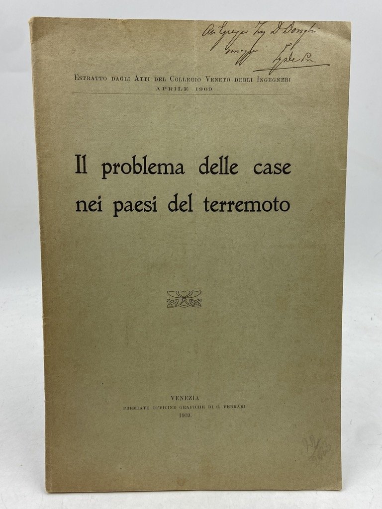 IL PROBLEMA DELLE CASE NEI PAESI DEL TERREMOTO. Estratto degli atti del Collegio Veneto degli Ingeneri, Aprile 1909.