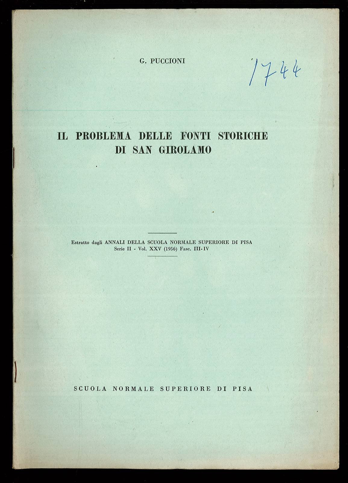 Opuscolo vintage. Estratto dagli Annali della Scuola Normale Superiore di Pisa. serie II Vol XXV Fasc. III-IV. Ordinario segno del tempo.