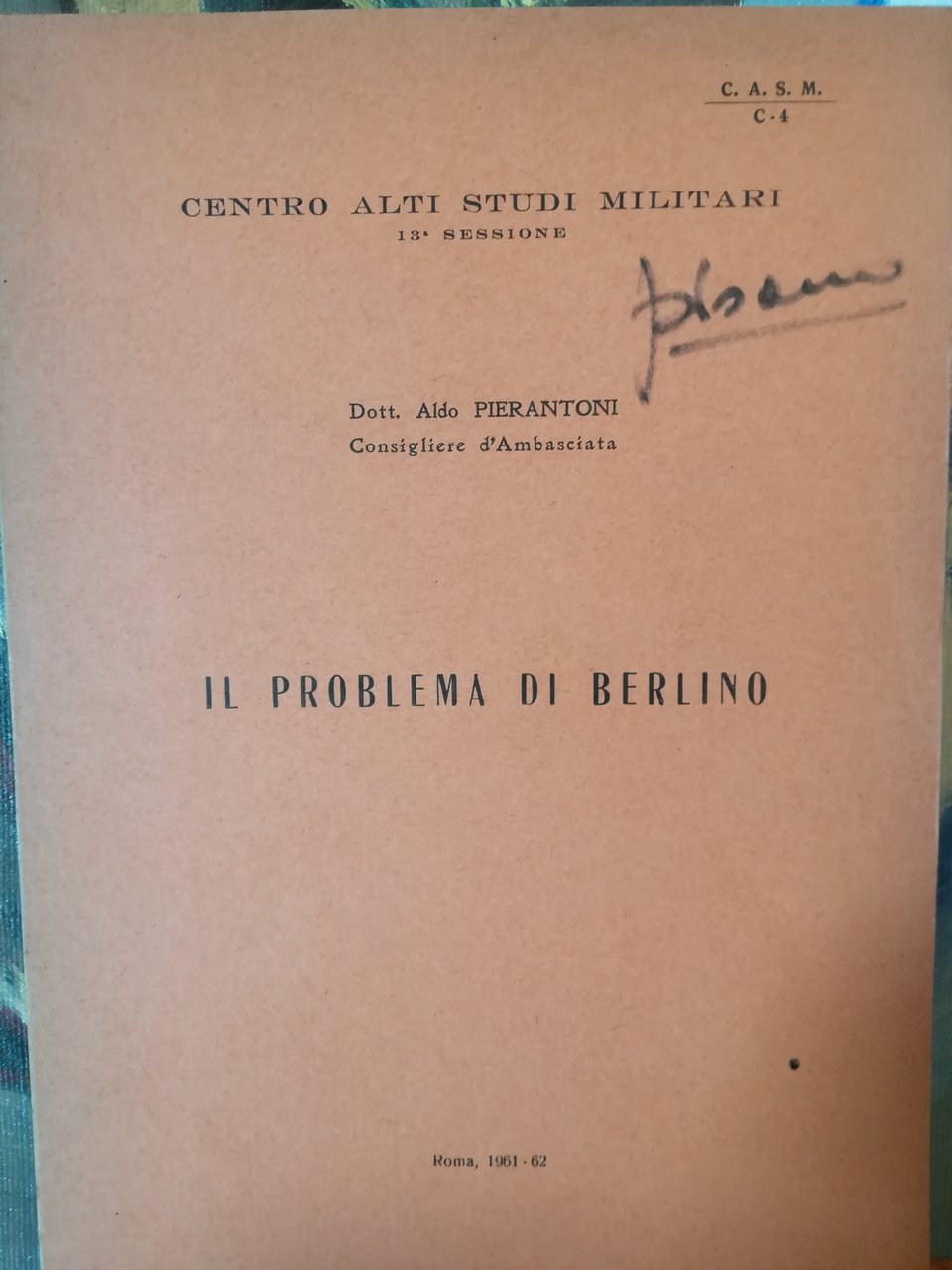Copertina: cartonata. Pubblicazione riservata del Centro Alti Studi Militari. Molto raro. Buono (Good) .