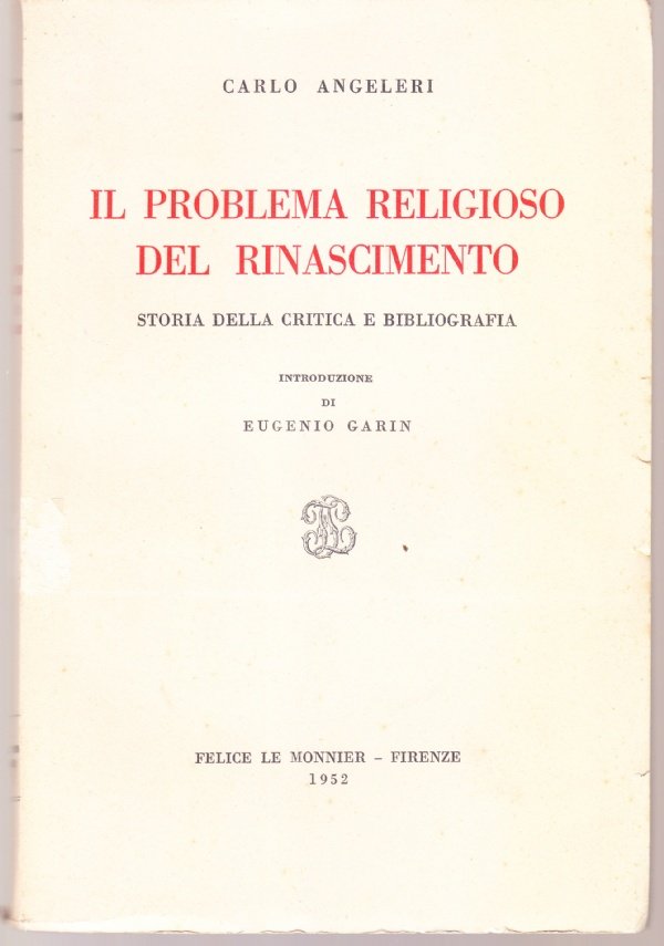 Il problema religioso del Rinascimento. Storia della critica e bibliografia