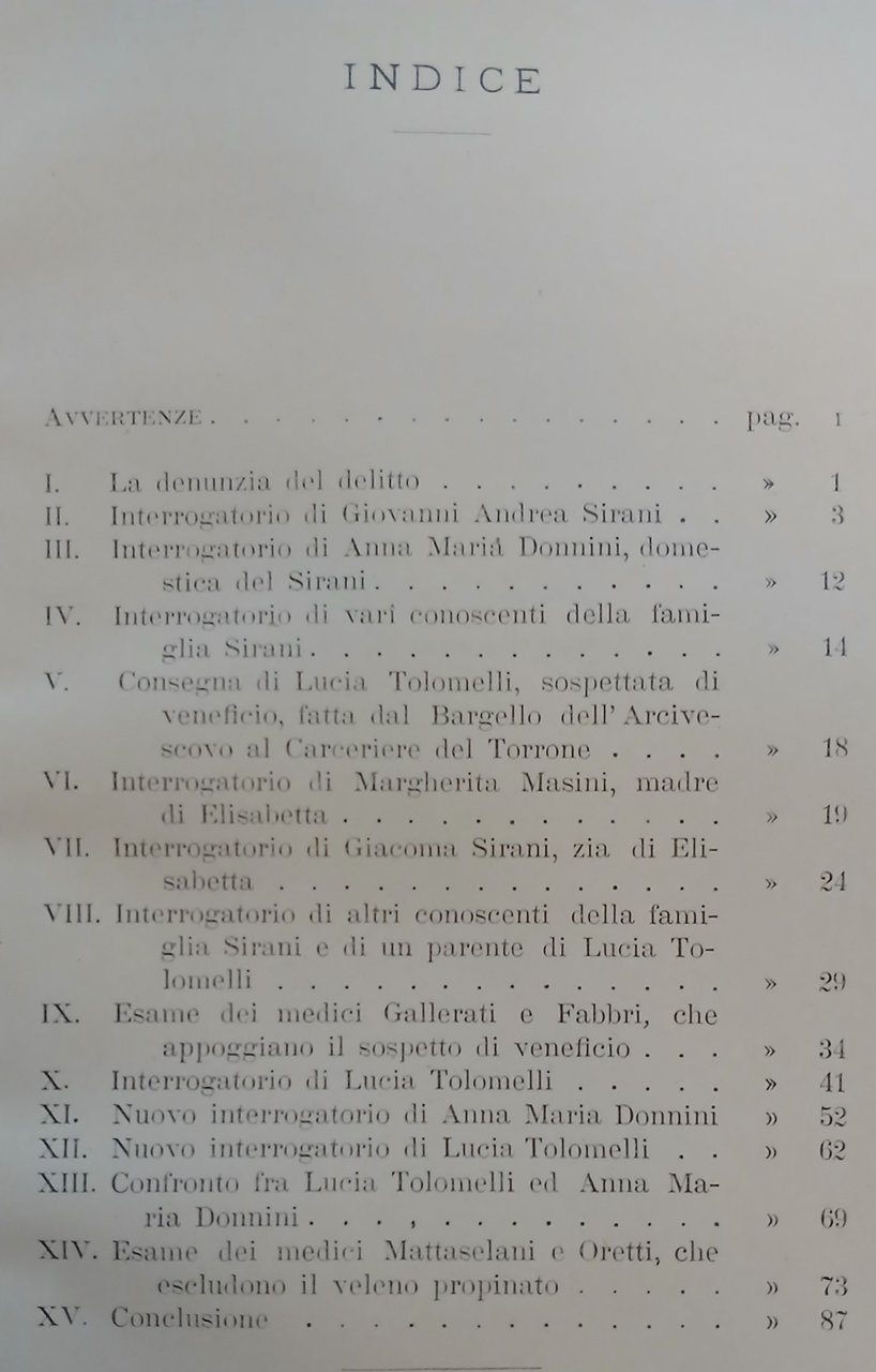 Il processo di avvelenamento fatto nel 1665-66 in Bologna contro Lucia Tolomelli per la morte di Elisabetta Sirani.