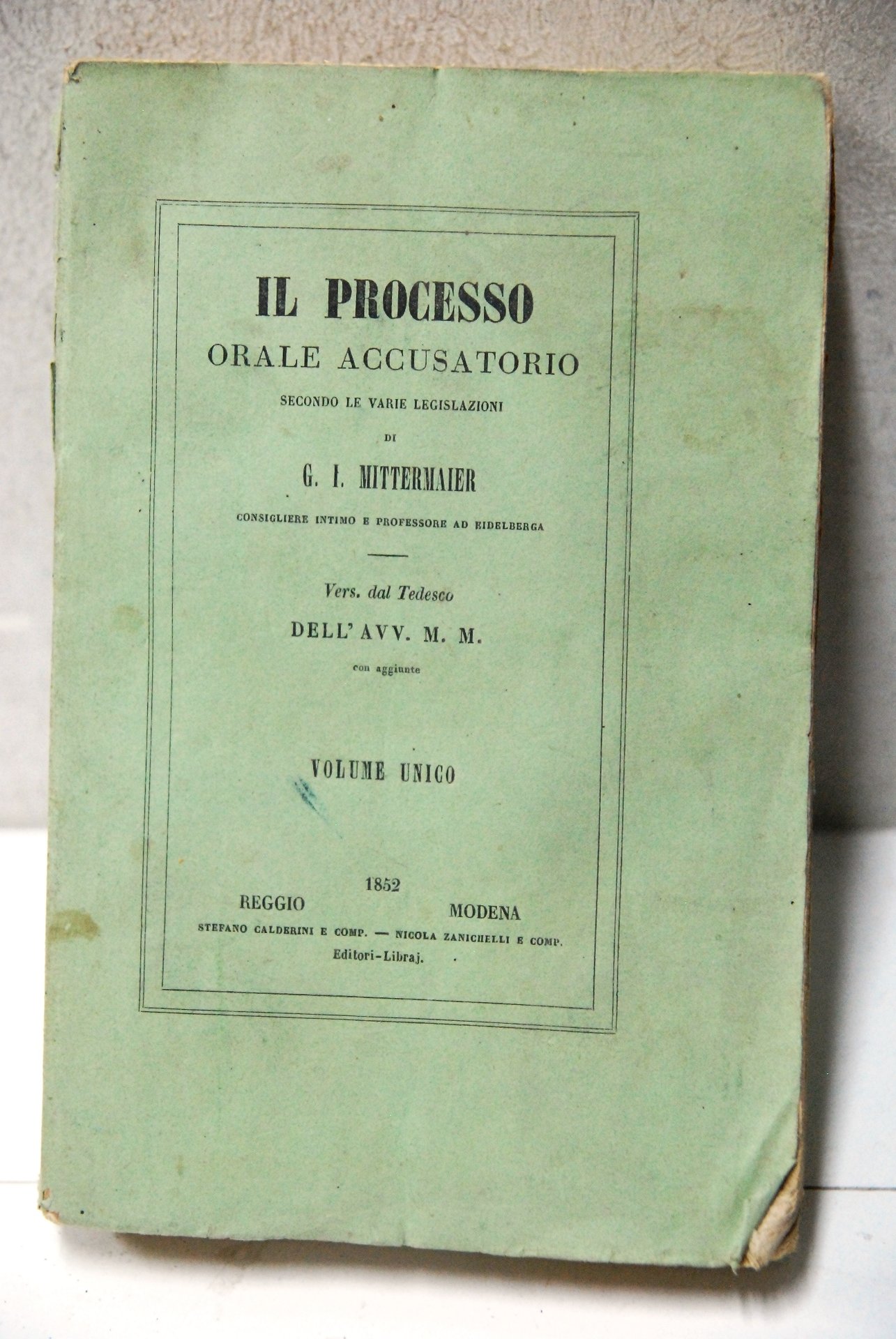 mittermaier il processo orale accusatorio secondo le varie legislazioni vol. unico. reggio modena 1852 .