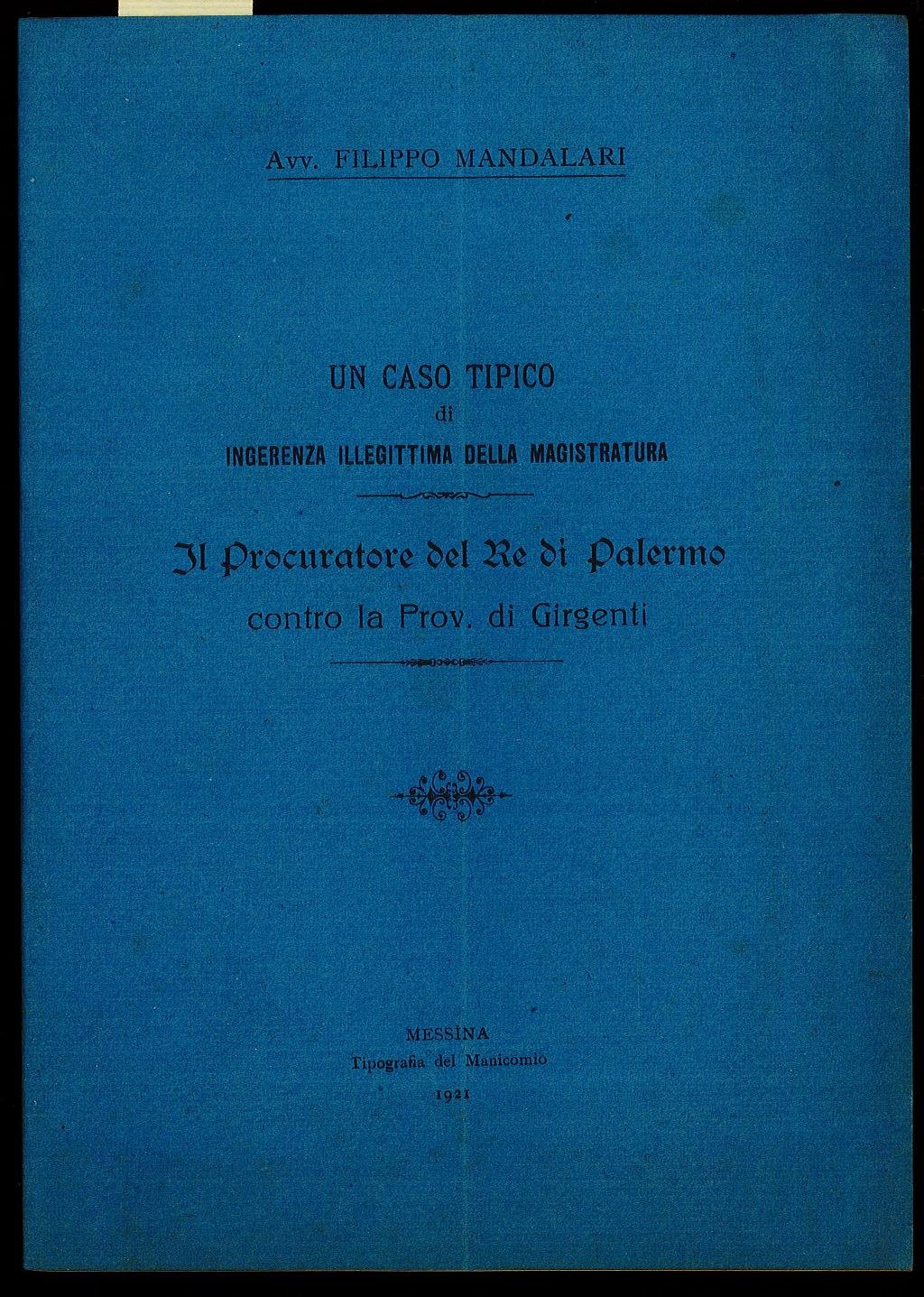 Il Procuratore del Re di Palermo contro la Prov. Di Girgenti