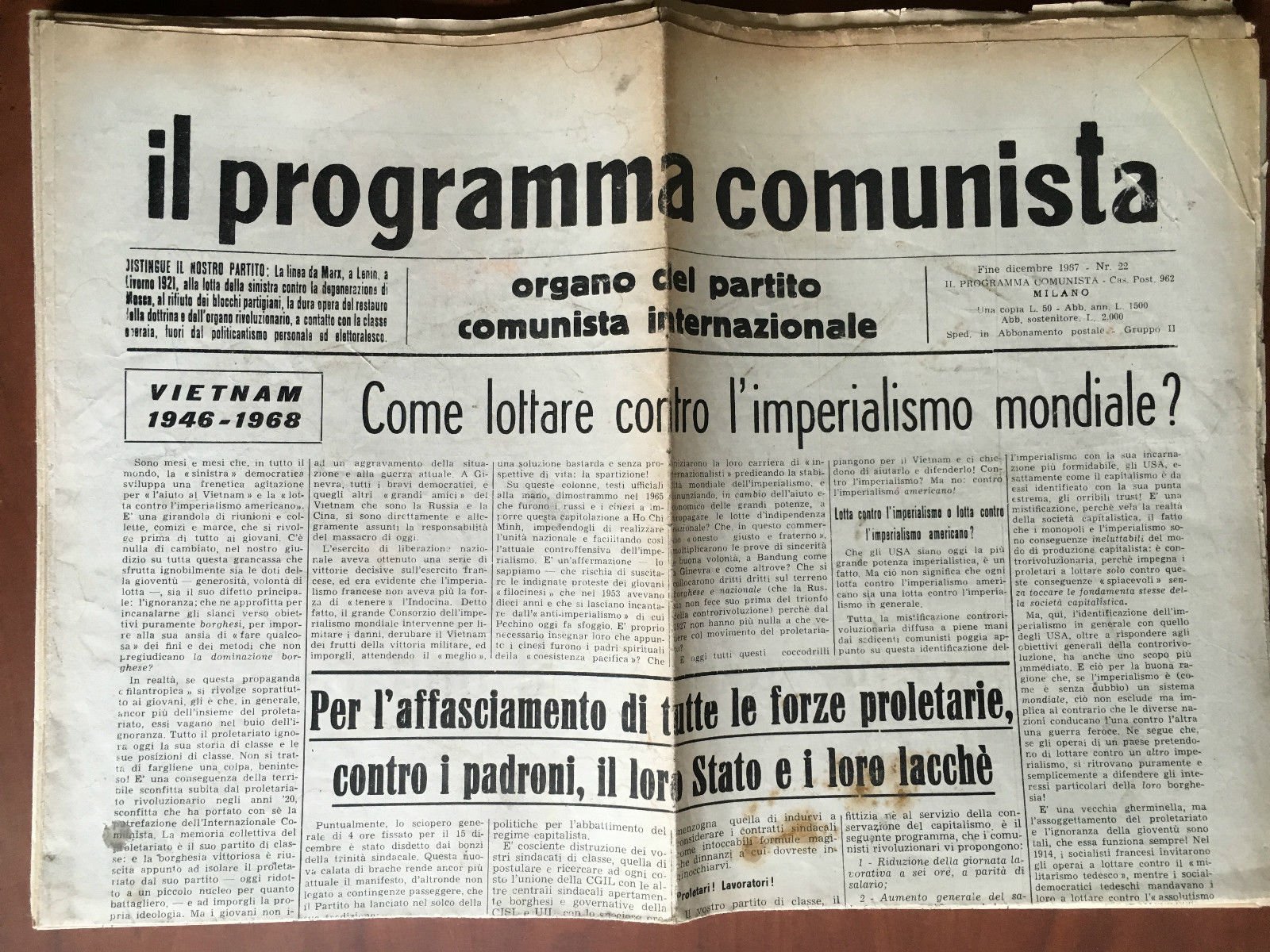Il programma comunista Anno XIV n^ 22 - fine dicembre 1967 - E20337