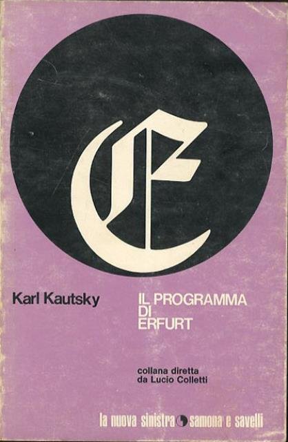 201 p. ; 22 x 14 cm. Passato e presente, 5. Il «Programma di Erfurt» (in tedesco: «Erfurter Programm») fu adottato dal Partito Socialdemocratico di Germania (SPD) durante il congresso tenuto ad Erfurt nel 1891. Questo documento, elaborato sotto la guida politica di Eduard Bernstein, August Bebel, e Karl Kautsky, sostituì il precedente Programma di Gotha. Redatto in buona parte da K. Kautsky chiedeva al governo il voto uguale e diretto, l’uguaglianza tra uomo e donna, la scuola statale, un’imposizione tributaria progressiva e diretta e leggi a favore dei lavoratori. Introduzione di Aldo G. Ricci. Brossura editoriale, coperta illustrata in cartoncino flessibile plastificato lucido. Qualche segno del tempo alla coperta e ai profili, timbro ex libris nel frontespizio, per il resto esemplare integro. Codice libreria 8997.