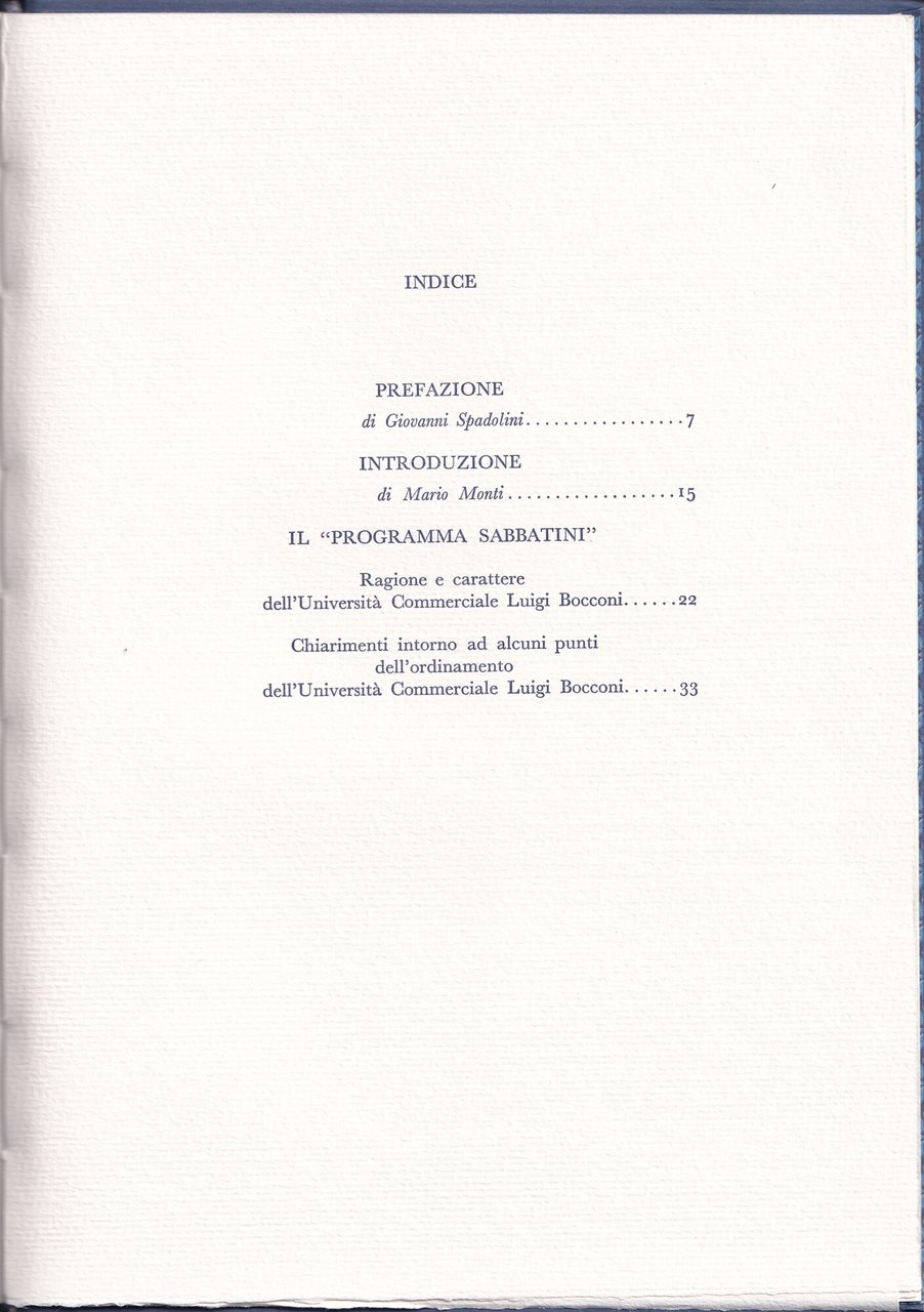 Il Programma Sabbatini. Documento di fondazione dell'Università Bocconi, 1991