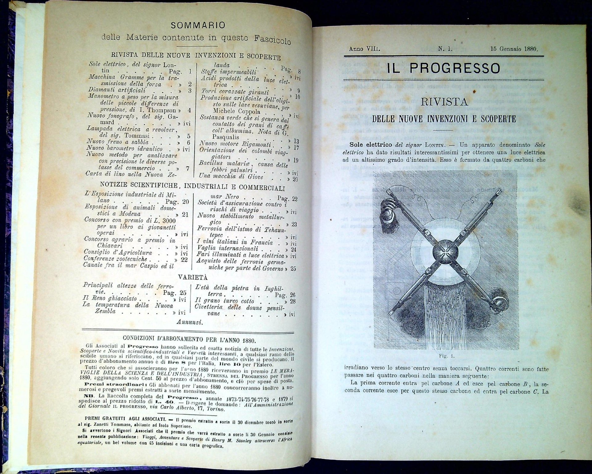 Il progresso, rivista quindicinale delle nuove invenzioni e scoperte notizie scientifiche industriali e varietà interessanti Annata completa 1880