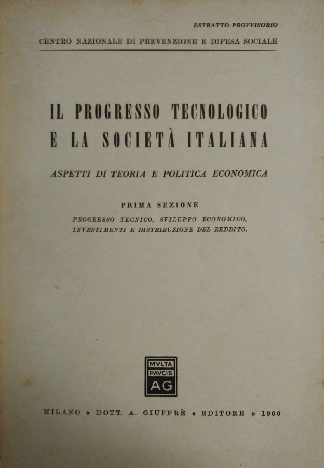 IL PROGRESSO TECNOLOGICO E LA SOCIETÀ ITALIANA. ASPETTI DI TEORIA E POLITICA ECONOMICA
