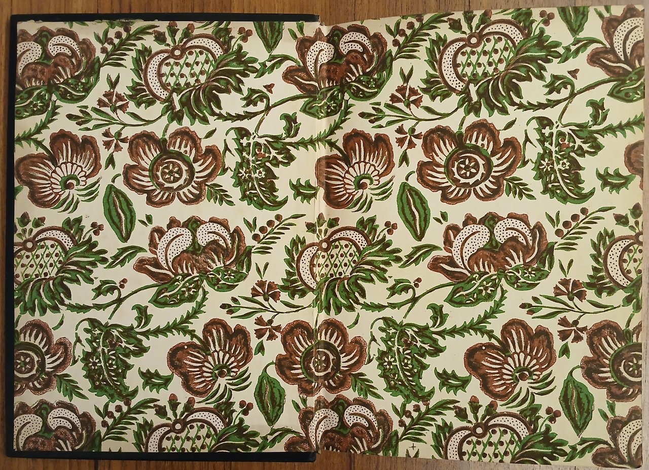 - legatura coeva in piena pelle, dorso a cinque nervi con filetti e piccoli fregi dorati, ai piatti impressioni a motivo floreale entro cornice con filetti e dentelle dorate, carte di guardia decorate, taglio di testa marmorizzato (Legatoria Dante Gozzi e Figlio, Modena)