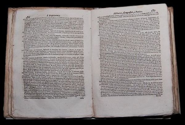 In 4° (23×16,5 cm); (8), 416 pp. Legatura coeva in pieno cartoncino molle con titolo manoscritto da mano coeva al dorso. Testatine, finalini ed iniziali ornati. Legatura lenta ma per il resto, nel complesso, in buone-ottime condizioni di conservazione. Ultima e definitiva edizione, la più completa fra quelle stampate, di questa celebre raccolta di curiosità in stile enciclopedico curata dal cremonese Barezzo Barezzi. Ad esempio si vedano alcune voci: CHINA, è la provincia de Sini, & il suo Rè affermano esser il maggior di tutto il mondo, & accioché il sangue regio non si venga mai a mescolare, ò contaminar con altro sangue, si prende sempre per moglie la sorella sua, ò la sua figliola, non havendo sorelle, ò la più stretta donna, che sia nel sangue suo. Non si lascia veder mai da alcuno, standosi nelle sue stanze, ?; LAMIE, à latini erano alcune femmine, le quali succhiavano il sangue de fanciulli, che noi hoggi chiamiamo streghe, & erano anco altre Lamie, che dicevano esser femmine molto piegate allamore, & anco molto ingorde delle carni humane, alle quali non credo io, che mancherà il seme prima che il Sol muti corso. Cfr. Piantanida (3756): Dizionario enciclopedico, ricco di notizie. Non mancano accenni al nuovo mondo (alle voci America, Brasile, Cristoforo Colombo, etc.), alle Indie Orientali, allEstremo Oriente, etc. Questa edizione è fra le meno comuni di questa celebre opera che venne ristampata per più di un secolo. Buon esemplare.