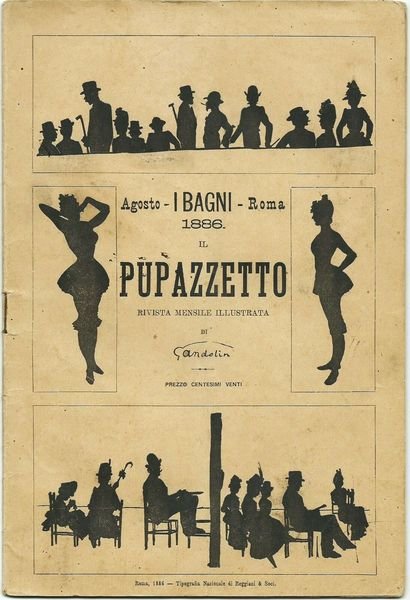 Il Pupazzetto di Gandolin - "I Bagni". Rivista Mensile Illustrata a cura di Luigi Arnaldo Vassallo. Moltissime illustrazioni in b/n n.t. Tipografia Nazionale di Reggiani & Soci - Roma, Agosto 1886. Brossura editoriale. 16,5x23,5; pp.32. Ottimo stato. ,