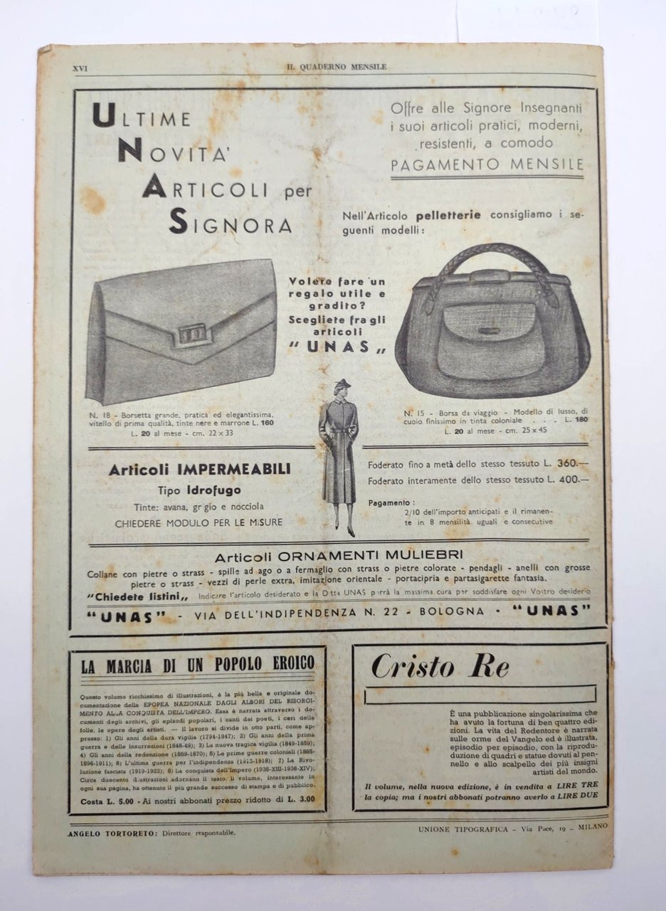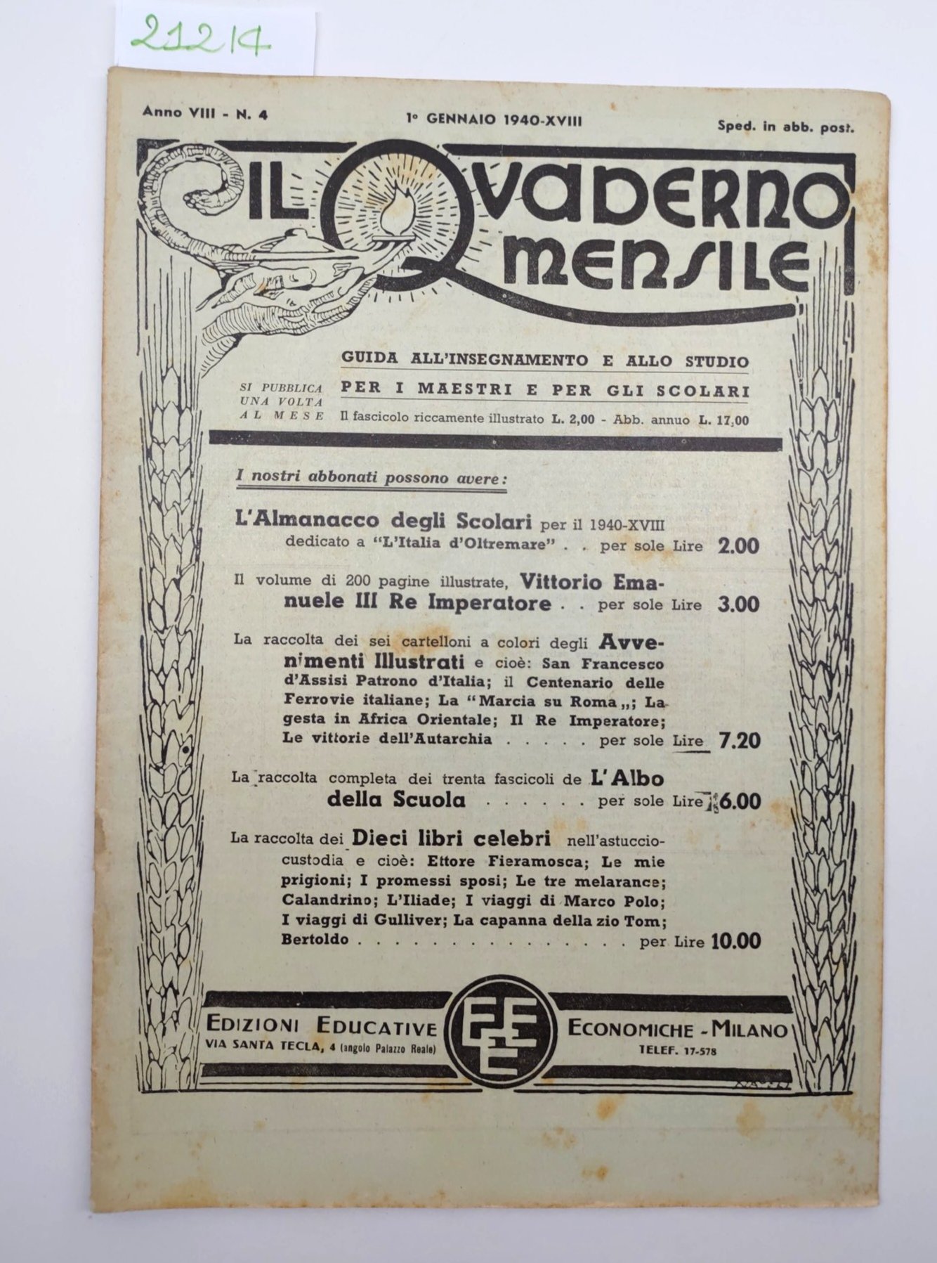 Il quaderno mensile n. 4-1940 guida all'insegnamento e allo studio per i maestri e per gli scolari Edizioni Educative Economiche