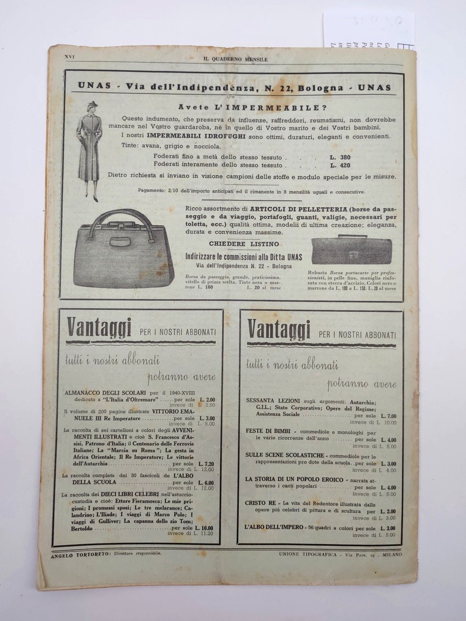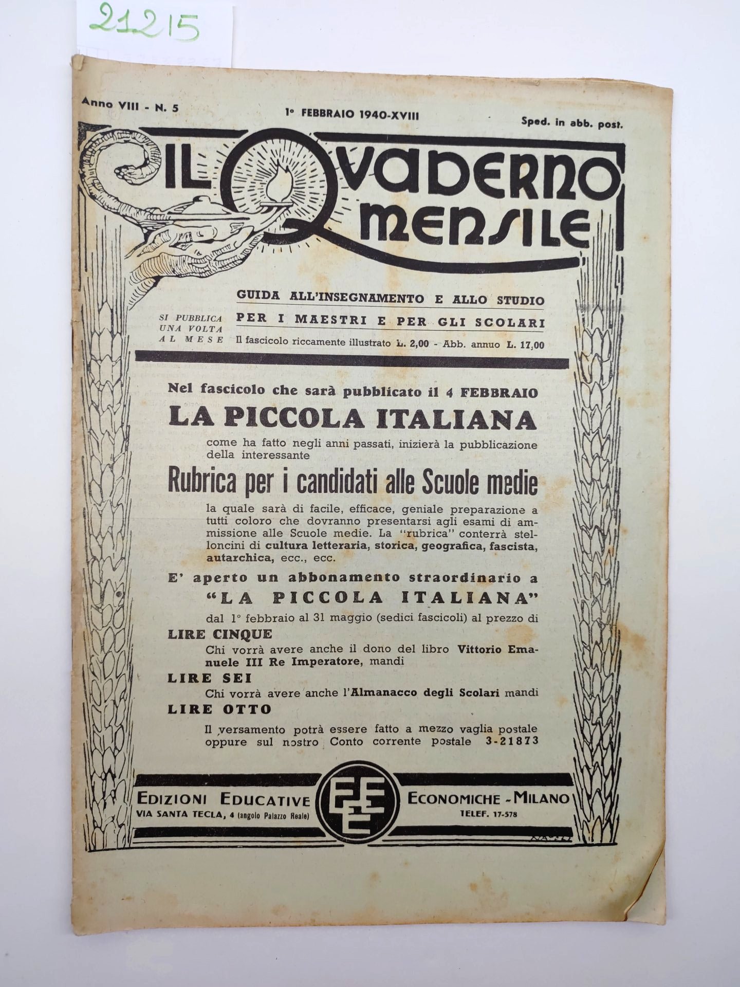 Il quaderno mensile n. 5 1940 guida all'insegnamento e allo studio per i maestri per gli scolari Edizioni Educative Economiche