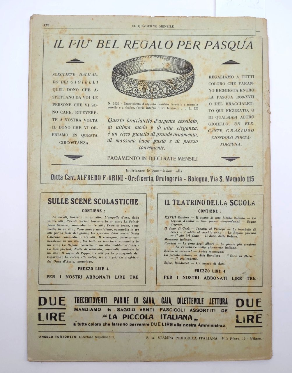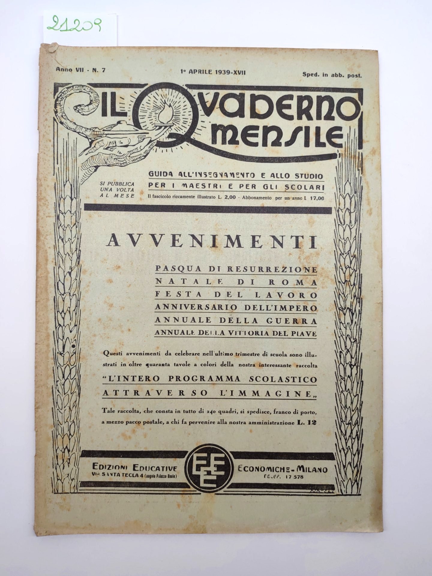 Il quaderno mensile n. 7 1939 guida all'insegnamento e allo studio per i maestri e per gli scolari Edizioni Educative Economiche