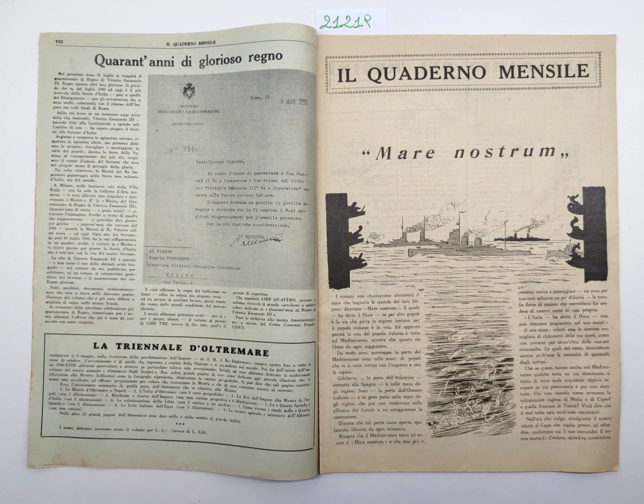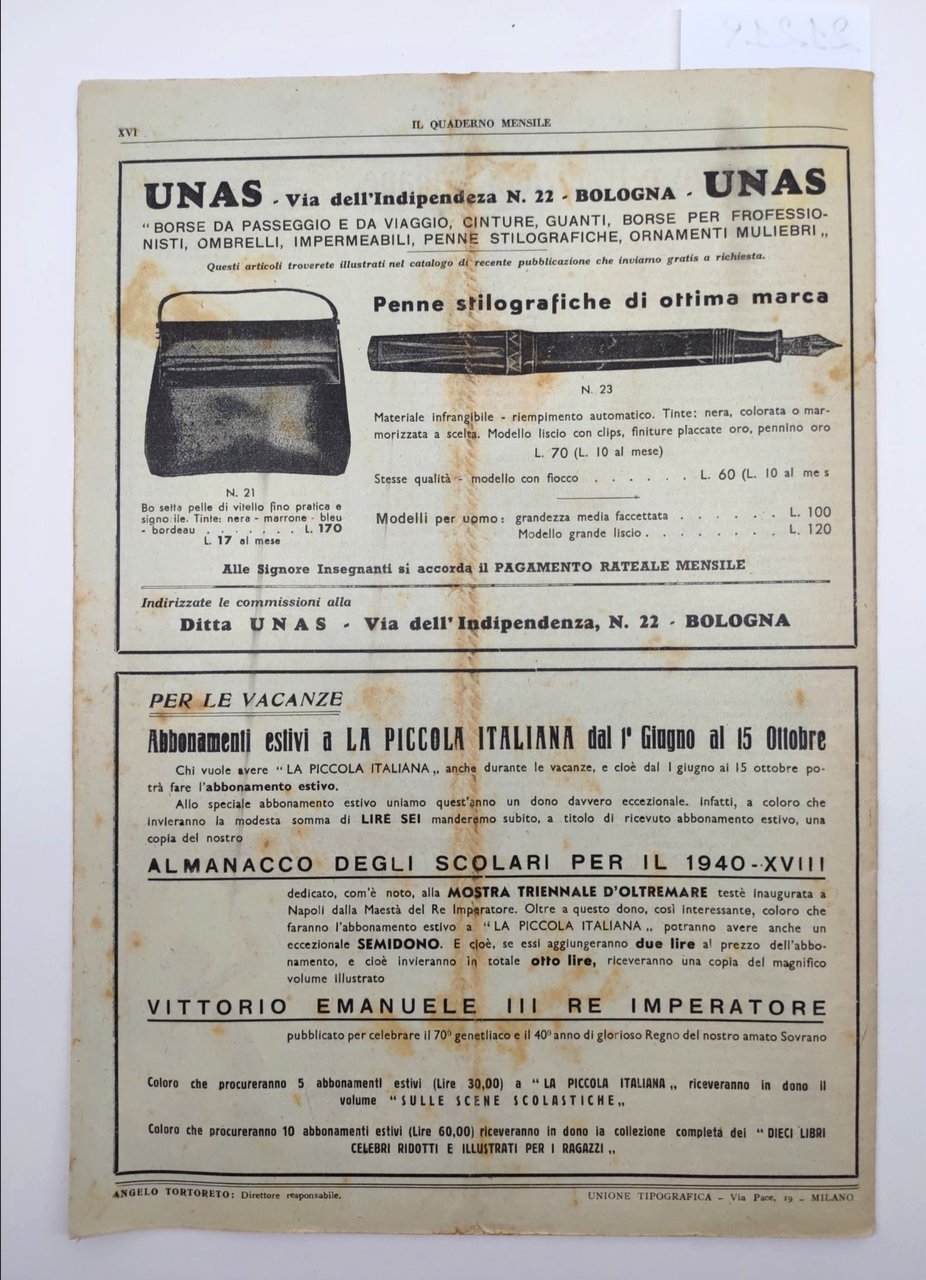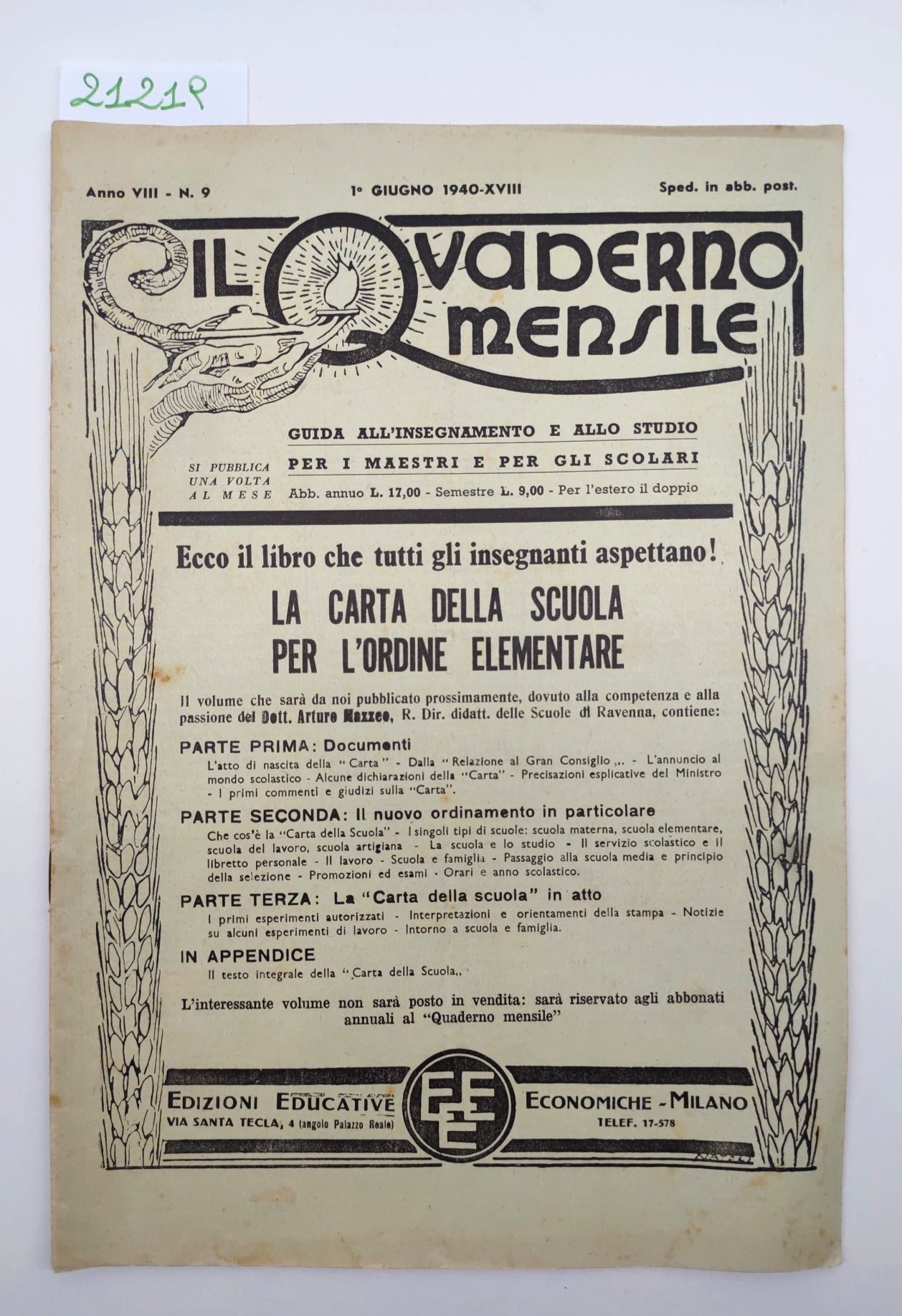 Il quaderno mensile n 9 1940 guida all'insegnamento e allo studio per i maestri per gli scolari Edizioni Educative Economica