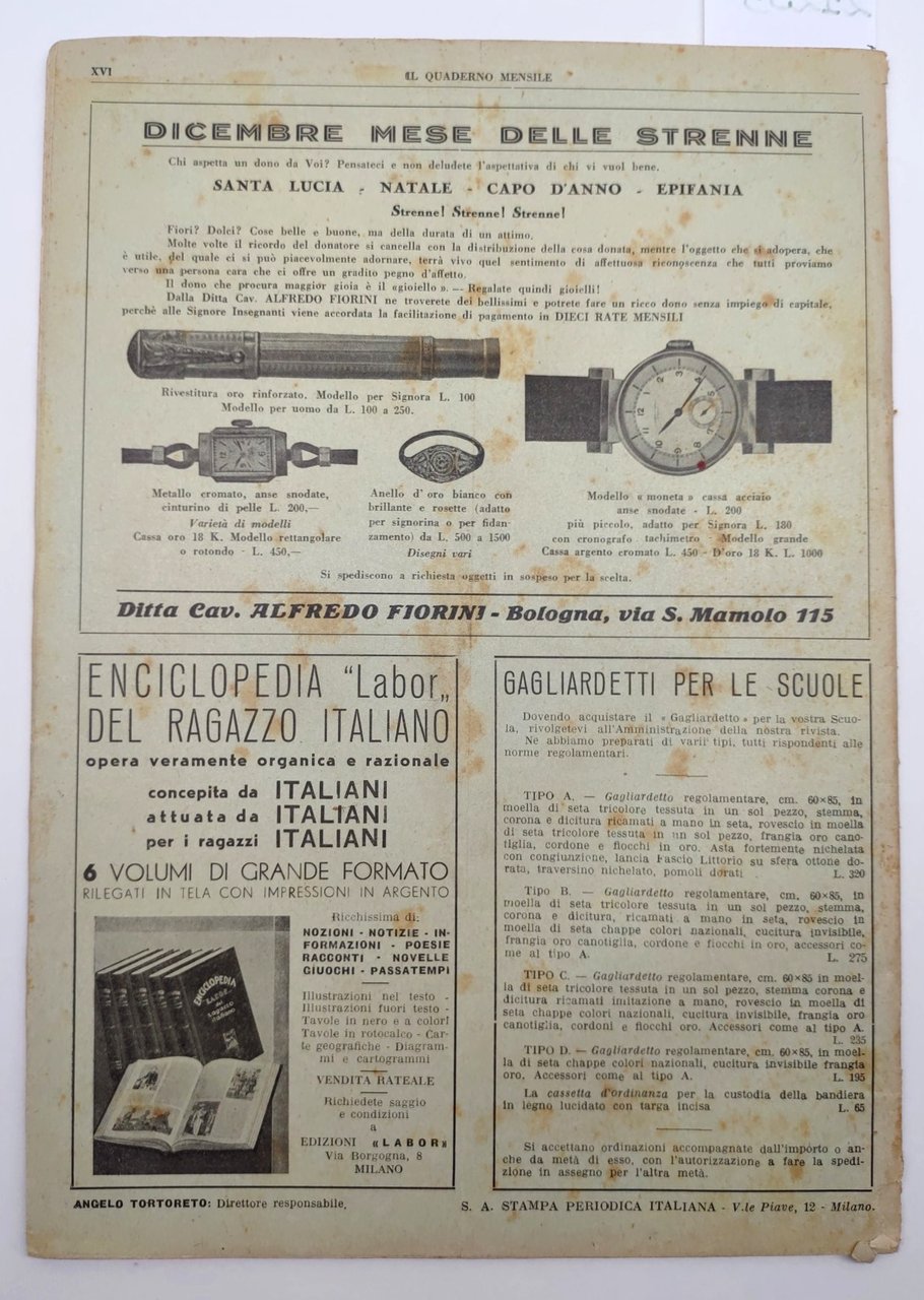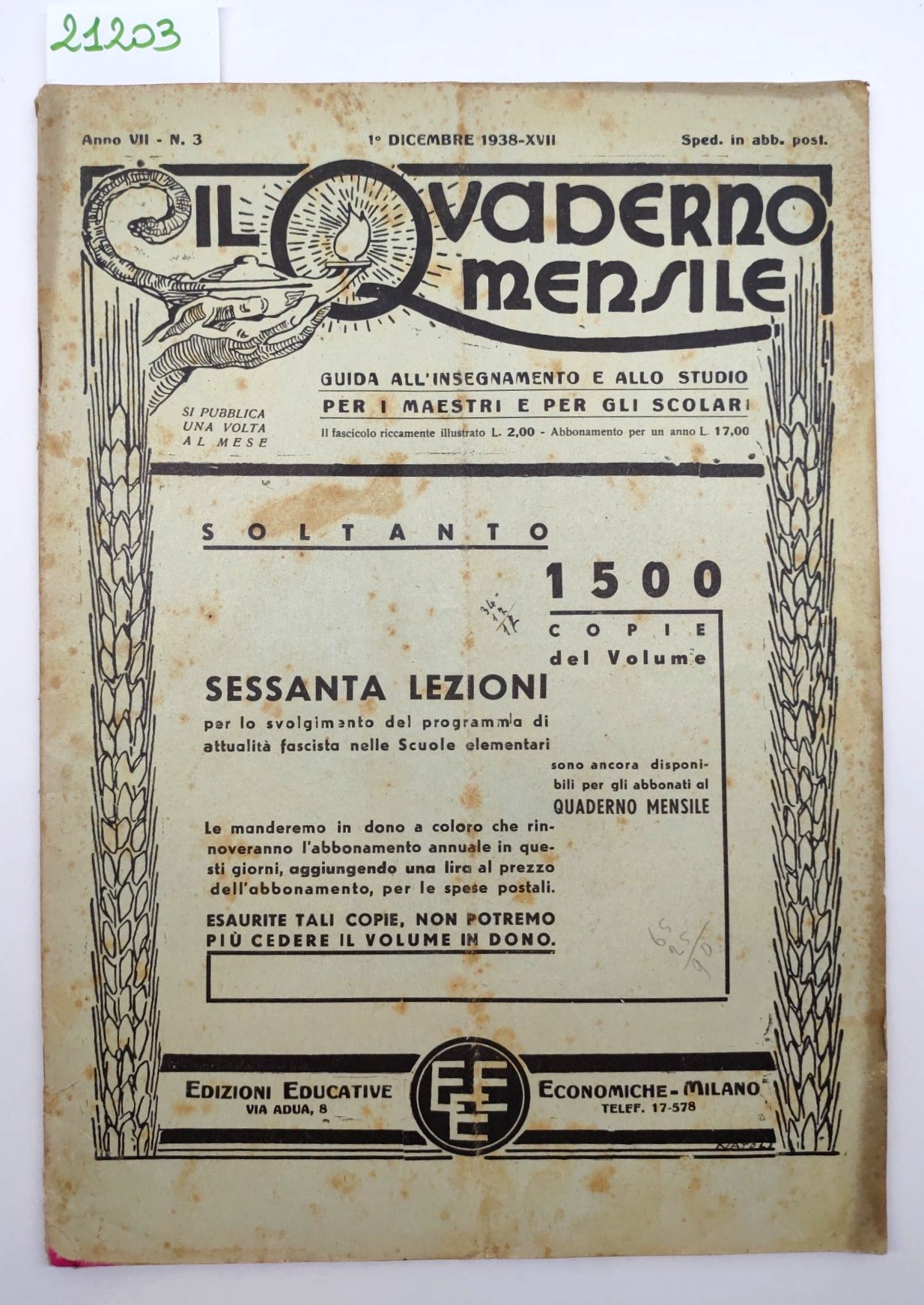 Il quaderno mensile numero 3 1938 guida all'insegnamento e allo studio per i maestri e per gli scolari Edizioni Educative Economiche