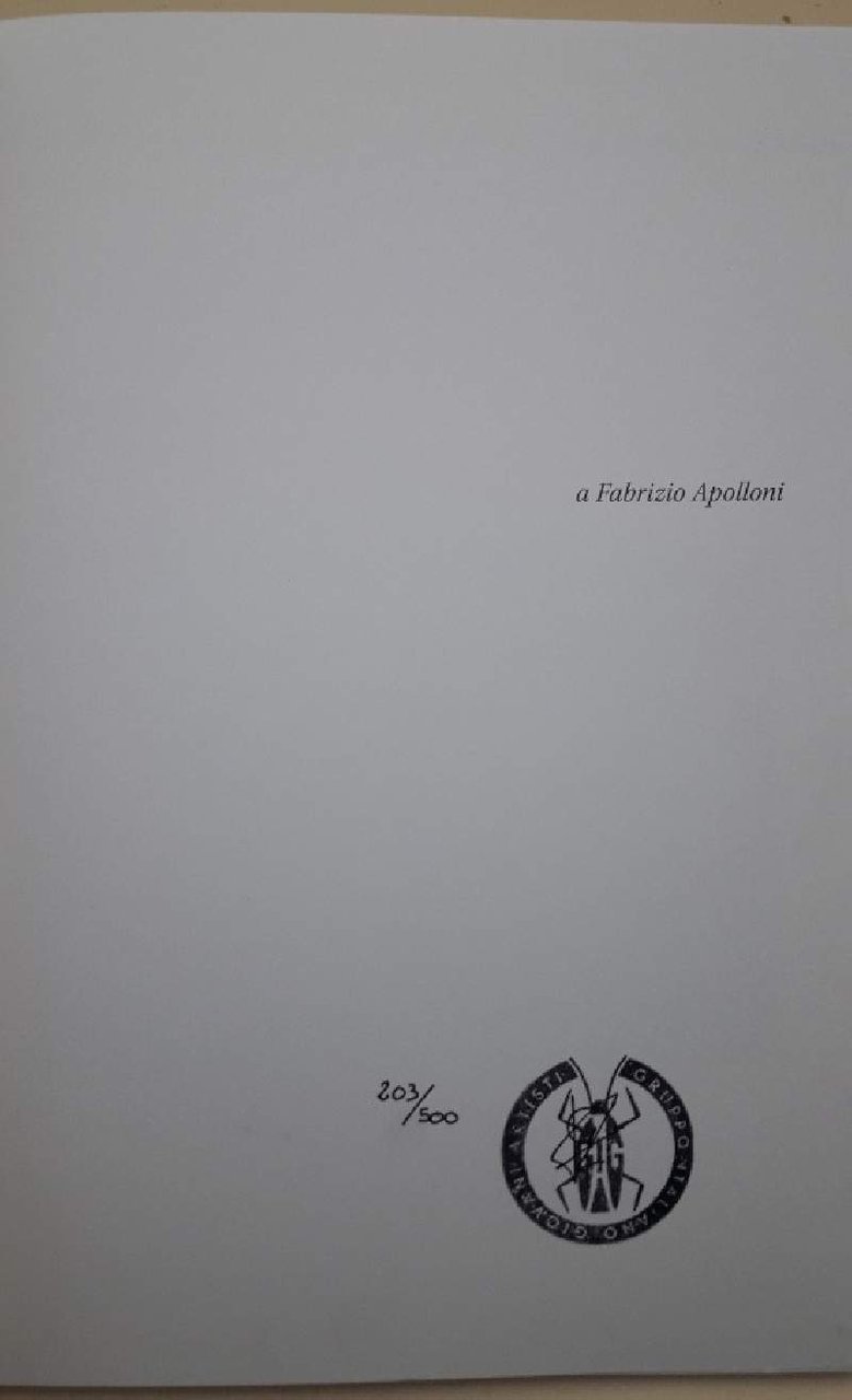 In 8', br. ed. pp. nn., ill. col. n.t., catalogo dell'esposizione GIGA, Roma 15/24 giugno 2006; copia numerata 203/500. lievi segni d'uso alla cop., interno in buono stato. ***Due to bureaucratic reasons, books dated over 70 years old cannot be immediately exported, please contact us before placing the order.***