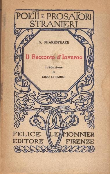 LE MONNIER, FIRENZE, 1925. In 16°, brossura editoriale, pp. XIX, 182, con un'illustrazione in antiporta. TRADUZIONE DI CINO CHIARINI. BUONO stato
