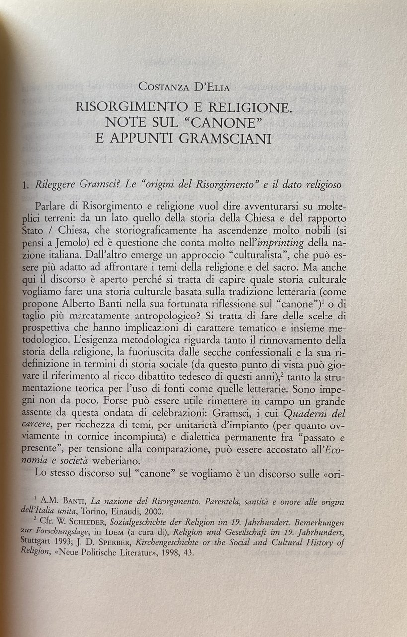 Costanza D'Elia Risorgimento e religione. Note sul canone e appunti gramsciani