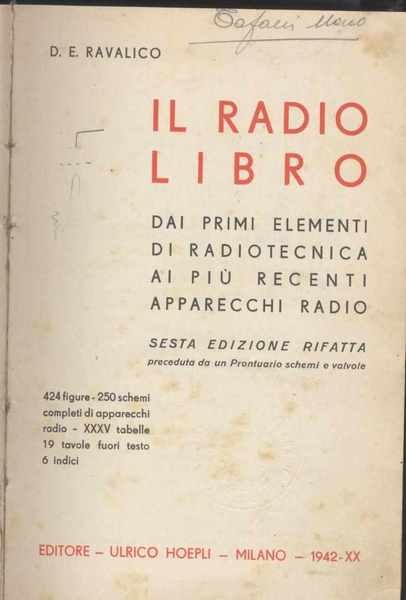 - Pagg. XXXV, pagg. 499 con 424 figure - 250 schemi completi di apparecchi radio XXXV tabelle e 19 tavole fuori testo e 6 indici