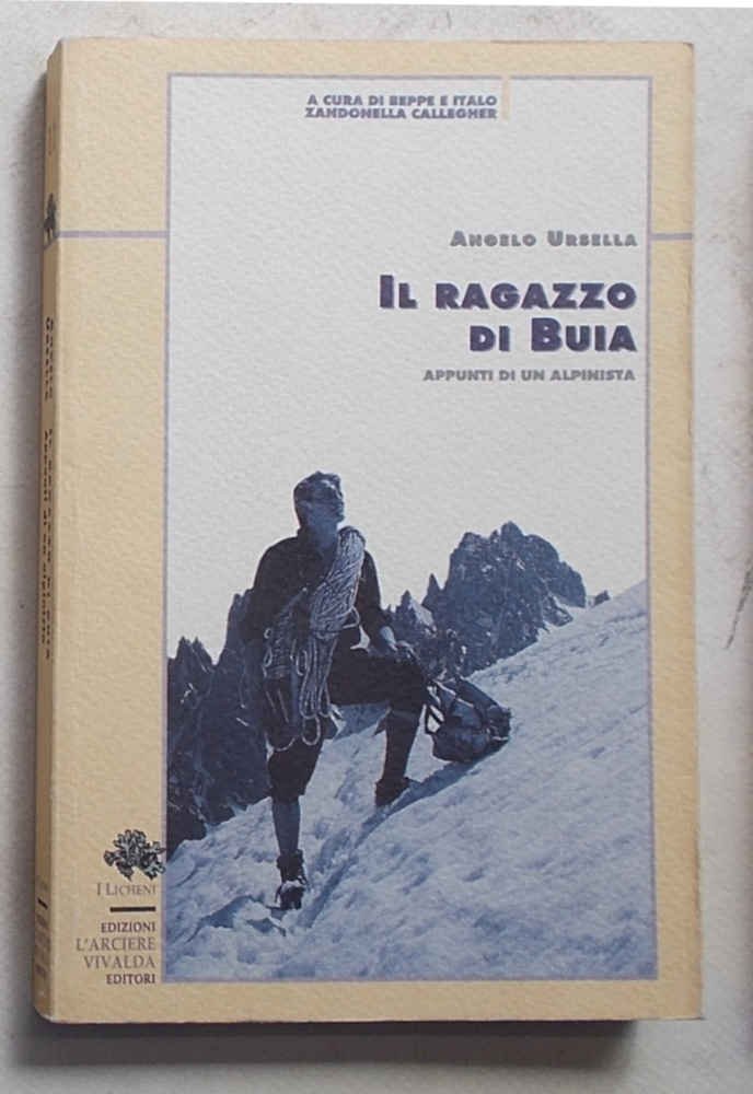 In 8° (cm. 20 x 12,5); pagg. 190; con 8 tavole fotografiche f.t.; leggera carton. originale figur. a colori. VG. ** Collana "I Licheni" n. 11. Prima tiratura. "Angelo Ursella, friulano di Buia, si dedica giovanissimo all'alpinismo. schivo e solitario impara ad arrampicare aiutandosi con il libro di Cesare Maestri <A scuola di roccia>. Grande alpinista, scalatore, per lo più in solitaria, di alcune delle vie più impegnative delle Dolomiti, ma anche ragazzo disperatamente solo. nel 1970, a soli ventitre anni, muore sulla parete nord dell'Eiger."