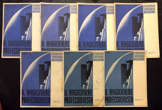 Sette numeri della rivista. Febbraio - Aprile - Maggio - Giugno - Agosto - Settembre - Novembre 1935 - XIII. Numeri 2 - 4 - 5 - 6 - 8 - 9 - 11 - Anno IX / X. Numerosissimi articoli, illustrazioni e pubblicità aziendali in b/n nel testo e in fine, bross. orig. ill. in colore. Normali segni del tempo ma buono stato.