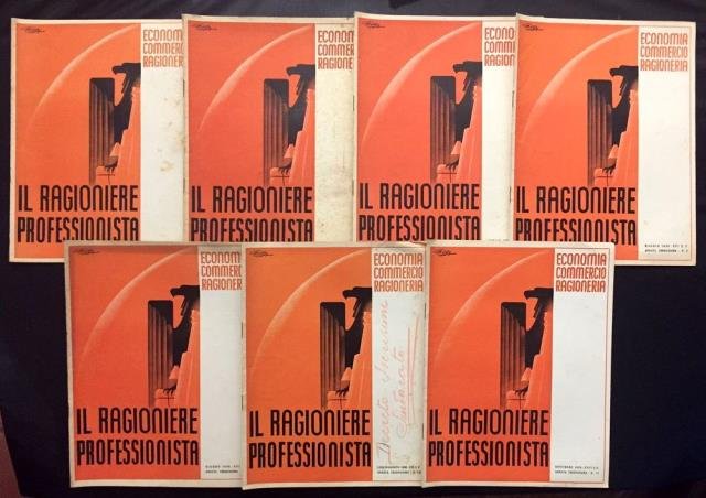 Sette numeri della rivista. Febbraio - Marzo - Aprile - Maggio - Giugno - Luglio / Agosto - Novembre 1938. XVI / XVII E. F. - Annata tredicesima N. 2 - 4 - 5 - 6 - 11. Numerosissimi articoli, illustrazioni e pubblicità aziendali in b/n nel testo e in fine, bross. orig. ill. in colore. Normali segni del tempo ma buono stato.