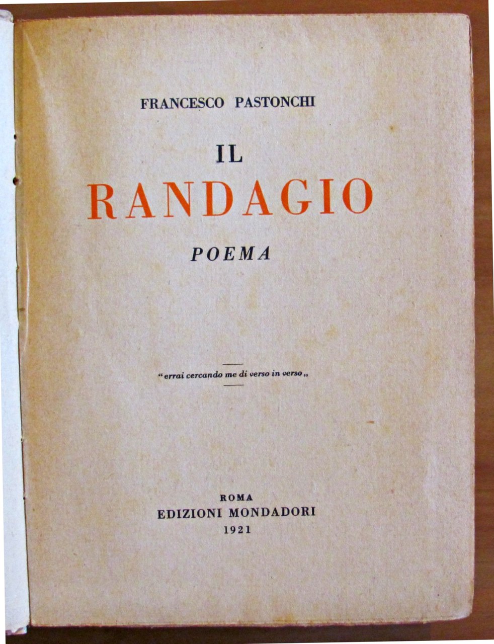 Copertina e iniziali dei capitoli in tinta di Baruffi. Ed. Mondadori - Roma, I edizione 1921. Brossura editoriale con mancanza parziale della parte bassa della pellicola che riveste il dorso e distacco dalla cerniera di parte della stessa. Peraltro libro in ottimo stato. 16x21; pp.430. BUONISSIMO STATO , Molto buono (Very Good)