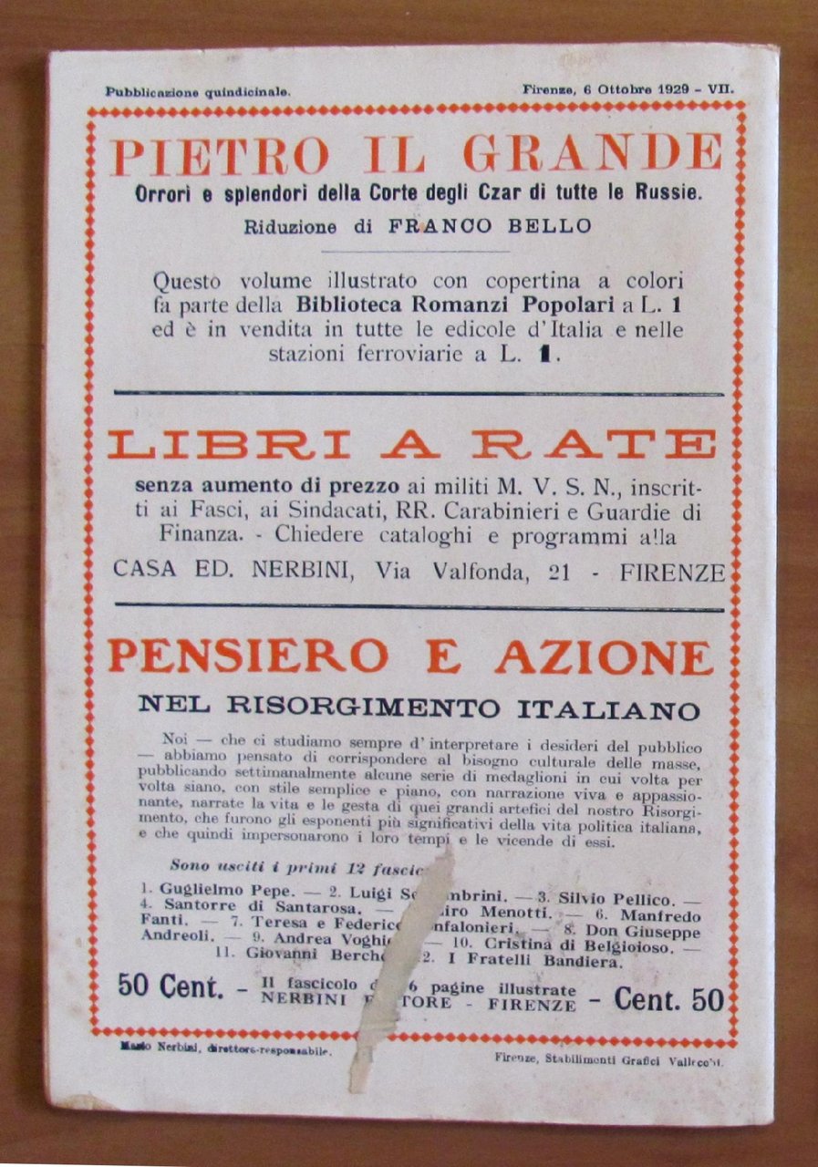 IL RE DEI LUPI - Collana IL ROMANZO SETTIMANALE N.28 - Nerbini, 1929 - ill TOPPI