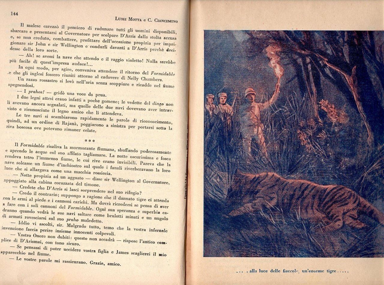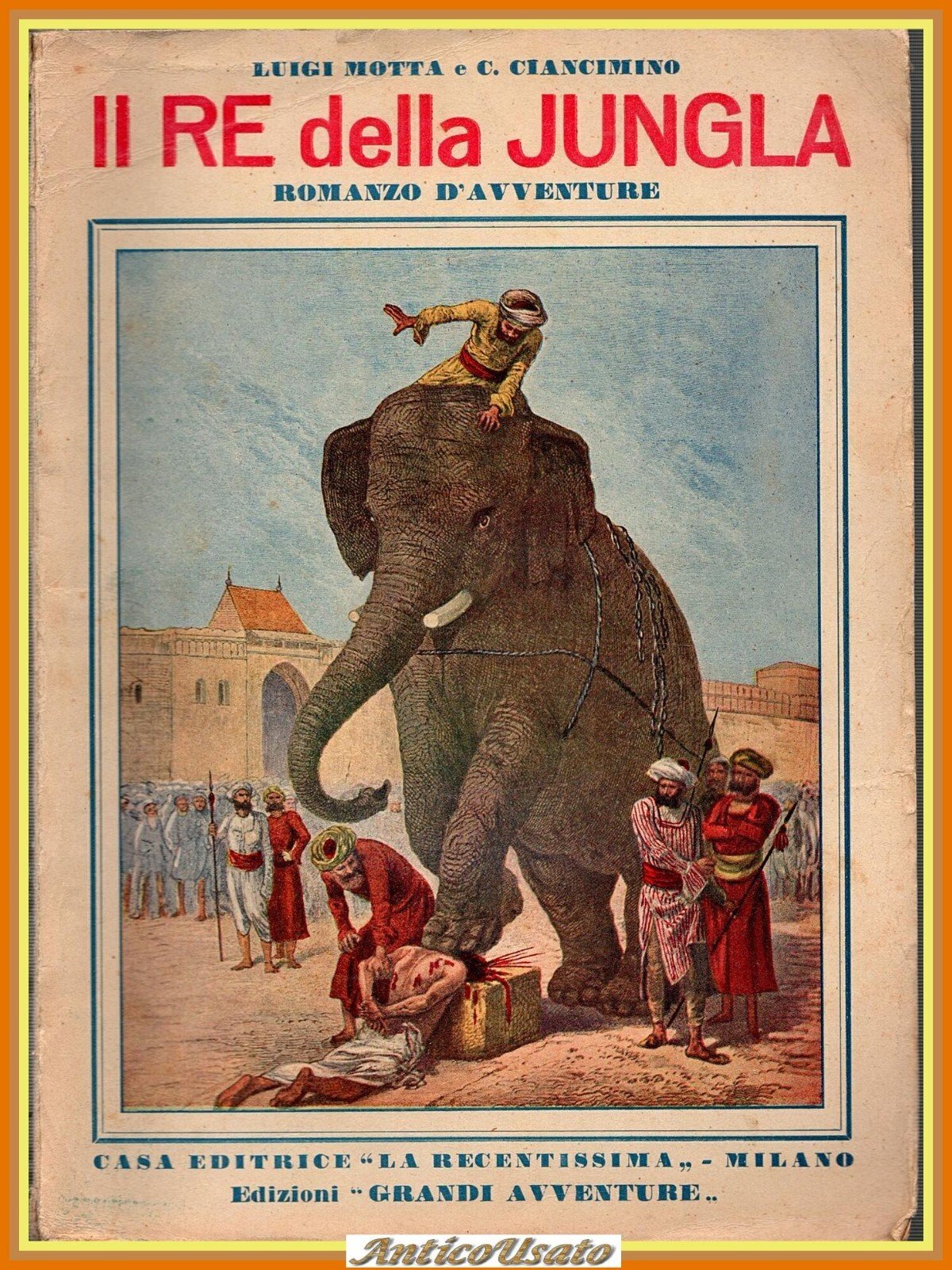 IL RE DELLA GIUNGLA Romanzo d'avventure di Luigi Motta e Calogero Ciancimino. Casa editrice la recentissima, collana Grandi Avventure, II edizione, 1934. 200 pagine. illustrazioni a colori fuori testo. Copertina editoriale in brossura. Stato di conservazione: molto buono (pagine ingiallite, piccole imperfezioni alla copertina) Libro usato saggistica