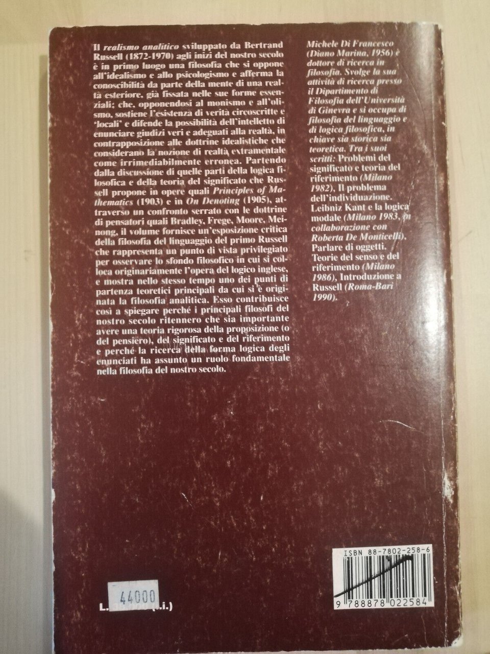 Il realismo analitico, logica primo Russell, Michele di Francesco, 1991, Guerini