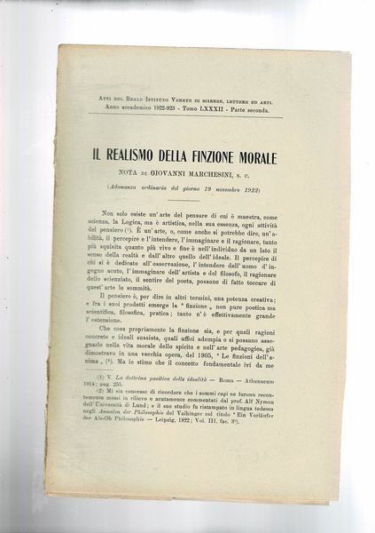 Il realismo della finzione morale. Estratto dagli Atti del Reale Istituto Veneto di scienze lettere e arti del 1922-1923.
