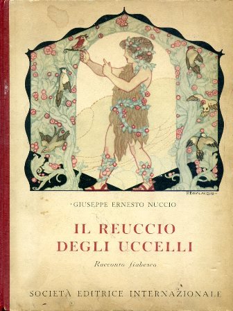In-4°, pp. 111, cartonatura editoriale illustrata a colori da Paolo Bevilacqua. Dorso in tela rossa. Sguardie illustrate in policromia con motivi di fiore e farfalle su fondo giallo. Illustrazioni a colori di Bevilacqua n.t. e f.t. Un restauro marginale alla prima c. bianca e qualche minima traccia d'uso alla cartonatura. In buono stato nel complesso. Seconda edizione, postuma, di questo bel racconto fiabesco del Nuccio (Verona, 1874-Palermo, 1933), pedagogista e scrittore per l'infanzia di origine palermitana (e in Sicilia egli trascorse la maggior parte della sua vita). 'La produzione letteraria del Nuccio intitolata alla fanciullezza costituisce un'opera d'arte organica ove ogni menomo particolare s'infiamma ad un concetto ultimo, punto centrale e incandescente della sua anima: il concetto della vita come eroica, religiosa, anche sotto le apparenze più trite e più delittuose; vita come processo educativo intimo operantesi per vie molteplici e imprevedute, nella stessa umanità fangosa, ribelle, bestemmiatrice' (Vincenzina Battistelli, Il libro del fanciullo). Il Nuccio fu altresì redattore del 'Giornalino della Domenica' di Vamba, maestro elementare e grande amico di Luigi Capuana, della cui lezione risentì in profondo. Cfr. Battistelli, cit. Guglielmelli, Autori per l'infanzia, pp. 165-175: 'Una fantasia di racconti piena di umanità'. Visentin, Scrittori per l'infanzia, passim. V. la monografia di P. Seminara, G. E, Nuccio, Firenze,1952.