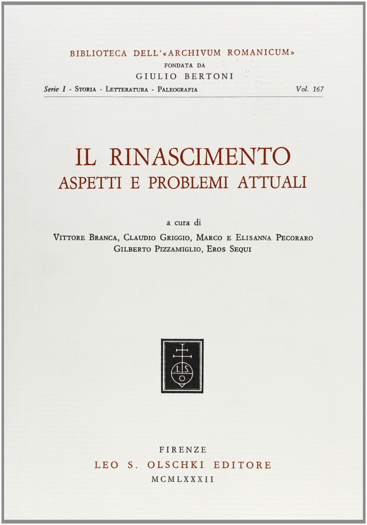 AA.VV Il Rinascimento. Aspetti e problemi attuali. Atti del 10^ Congresso dell'Associazione internazionale per gli studi di lingua e letteratura italiana. , Olschki 1982, 702 (63157)