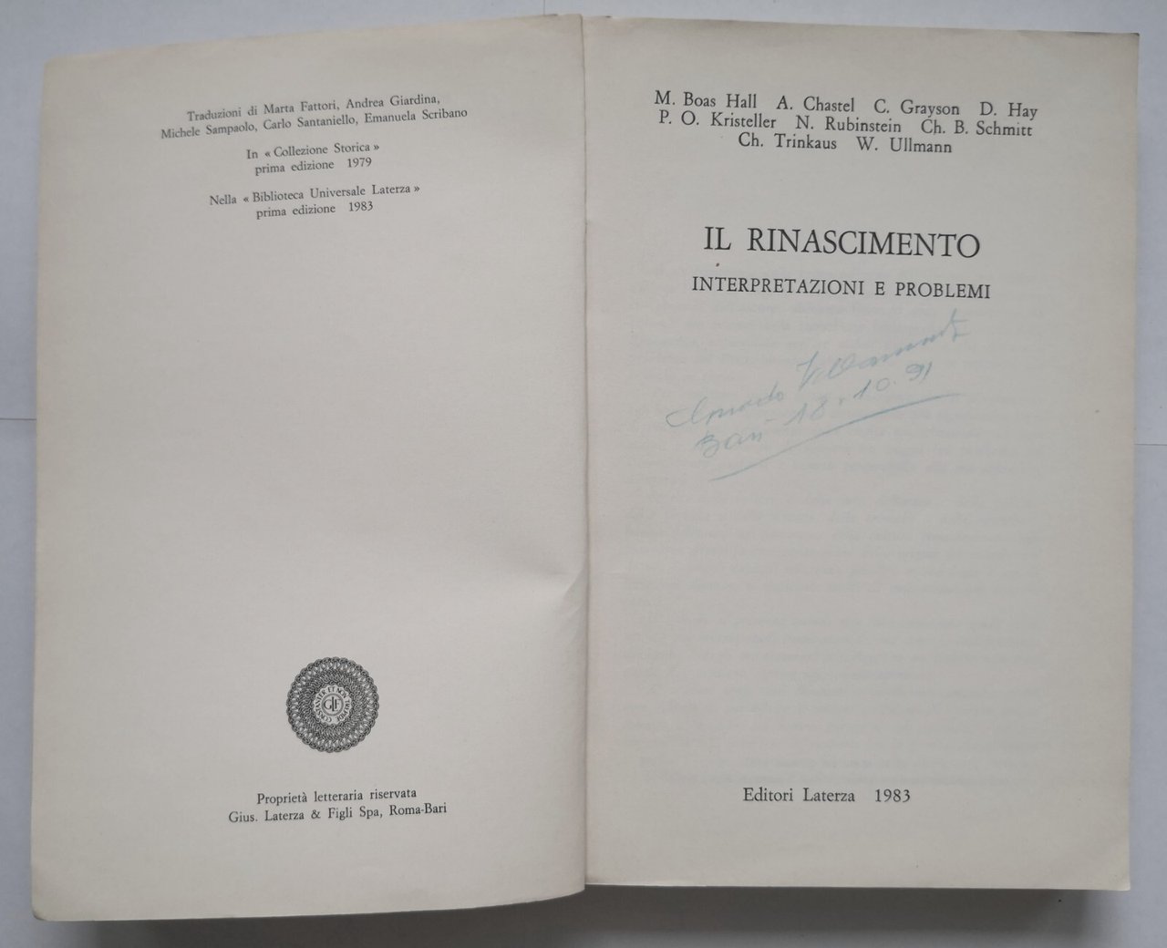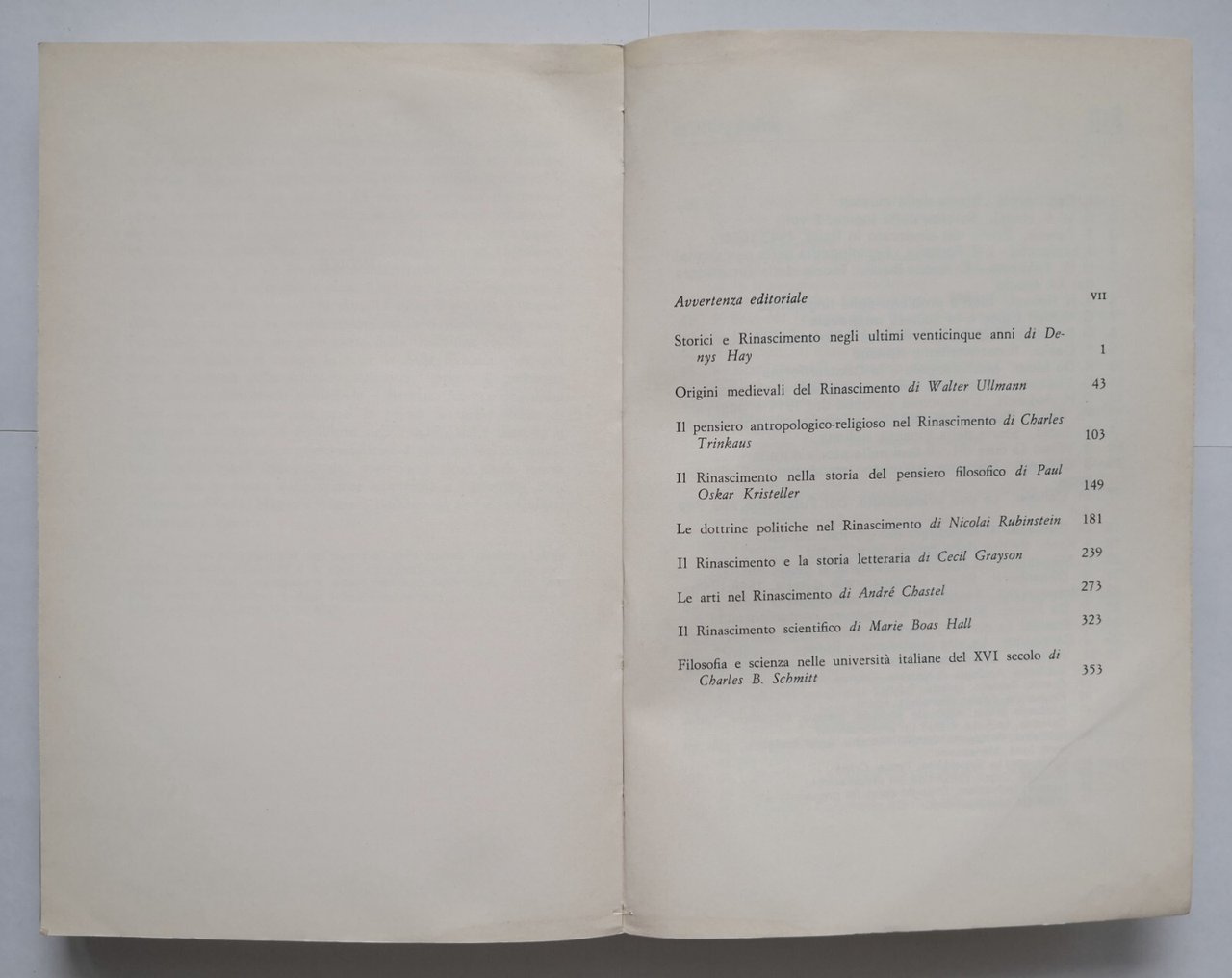 IL RINASCIMENTO. INTERPRETAZIONI E PROBLEMI di M. Boas Hall, A. Chastel, C. Grayson, D. Hay, P. O. Kristeller, N. Rubinstein, Ch. B. Schmitt, Ch. Trinkaus, W. Ullmann.