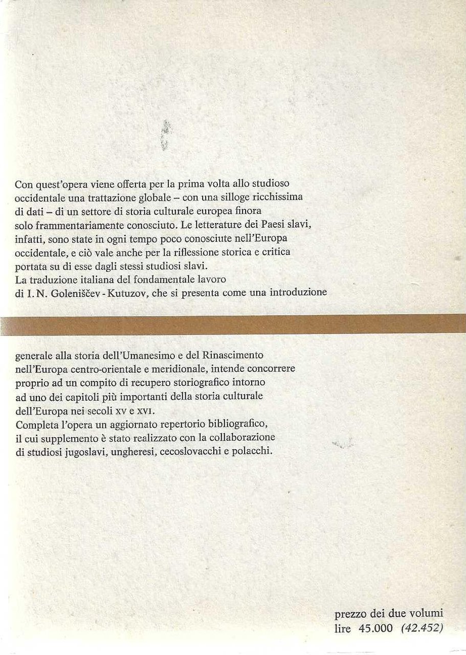 "Il Rinascimento italiano e le letterature slave dei secoli XV e XVI"
