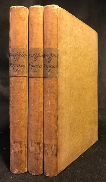 Tre volumi (opera completa) in cartone coevo con titoli manoscritti su tassello, 8vo cm15x23, pp XXIV 288 (2), 261 (3), 258 (2). Onesta edizione ottocentesca di questa fondamentale fonte per la storia dell'arte. Nota a penna sulla prima sguardia e altra a matita sul margine di pagina XVI (entrambe riflessioni di un precedente proprietario piuttosto conservatore su Napoleone e sull'arte contemporanea); la nota a matita riporta la data 1960.