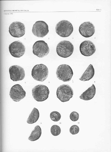 In 4to (cm 28x21,5) brossura editoriale Pag. 24 con 2 tavole in b/n che riportano le foto di 16 monete (diritto e rovescio) ognuna con descrizione e catalogazione. - Ripostigli monetali in Italia. Documentazione dei complessi. Il ripostiglio è compreso in un arco cronologico tra la metà del II secolo a.C. ed il 15 a.C.