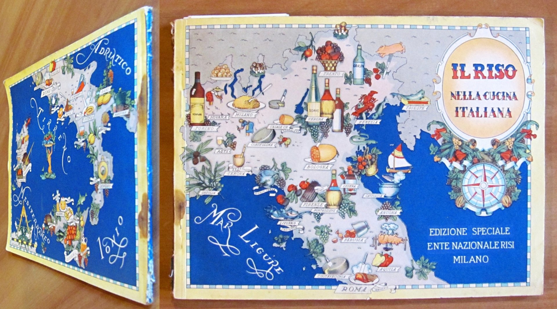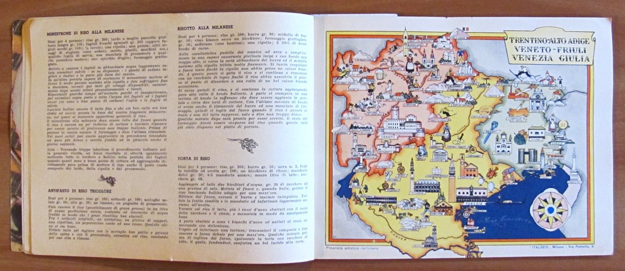 Illustrazioni fotografiche a colori ai risguardi, 6 simpaticissime cartine geografiche a colori, a piena pagina, ante-retro di Nicouline e piccole illustrazioni in b/n n.t. Edizione Speciale Ente Nazionale Risi - Milano, 1951. Brossura editoriale con piccole macchie di ruggine alle spille e minime mancanze al solo dorso. Peraltro interno fresco e pulito. 20,5x15,5; pp.40 non numerate. Buonissimo stato. , Molto buono (Very Good)