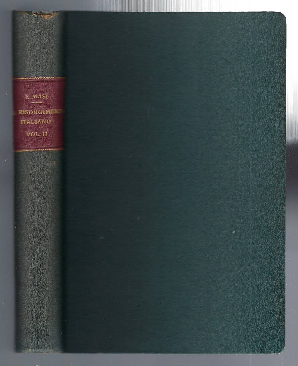 Legatura in pieno zigrino verde, con titoli in oro su tassello rosso al dorso liscio.