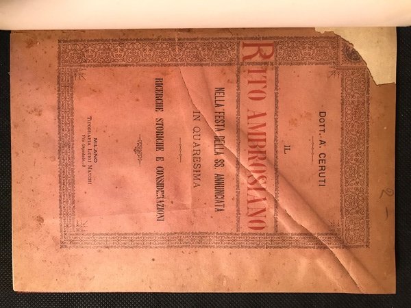 - Esemplare da studio, legatura recente, piatti della brossura conservati ma con mancanze e mende di scotch, carte brunite, lieve difetto sulla cuffia superiore ma completo e leggibile.