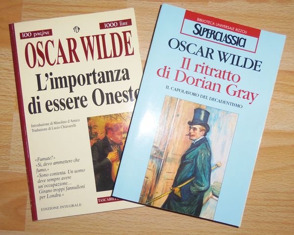 [Oscar Wilde letteratura] 2 volumi in brossura: Il ritratto di Dorian gray - (cm. 20.1) -pp. 269, buon esemplare con minimi segni del tempo- L'importanza di essere onesto (cm. 21) -pp. 100 usuali lievi segni del tempo e vecchia firma di appartenenza cancellata alla prima pag. bianca. entrambi buoni esemplari. [n36]