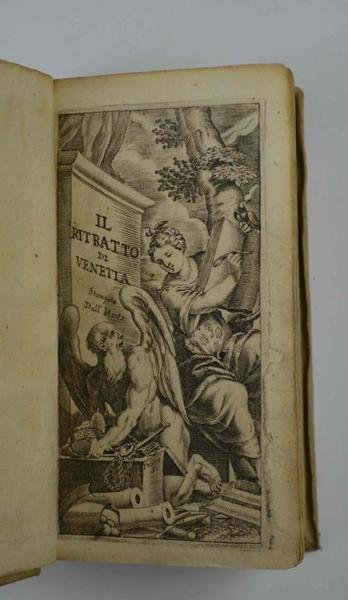 Cm. 14, pp. (24) 606 (12). Antiporta figurata e fregio xilografico al frontespizio. Legatura coeva in piena pergamena rigida. Leggermente ondulate le carte, peraltro esemplare genuino e ben conservato. Edizione originale, piuttosto rara. Così si esprime il severo Cocognara (4370): "Professa l'autore d'essersi servito delle migliori Guide come lo Stringa, il Bardi, il Sansovino col Martignoni, e il Boschini L'opera non è infatti spregevole". Cfr. Anche Fossati-Bellani (2263) e Cicogna il quale attriguisce l'opera all'abate Ganassa.