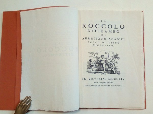 Ristampa anastatica dell'edizione di Venezia, Stamperia Pezzana, MDCCLIV (1754).<BR>Tiratura limitata di 600 copie "per gli amici di Giuseppe Roi"; la nostra n. 82.<BR>In 8°; pp. XXIV, 67 con una grande tavola ripiegata fuuori testo; brossura editoriale muta con sovraccoperta e custodia illustrata.<BR>CONDIZIONI OTTIME, come nuovo (lievissime tracce d'uso alla custodia)<BR><BR>