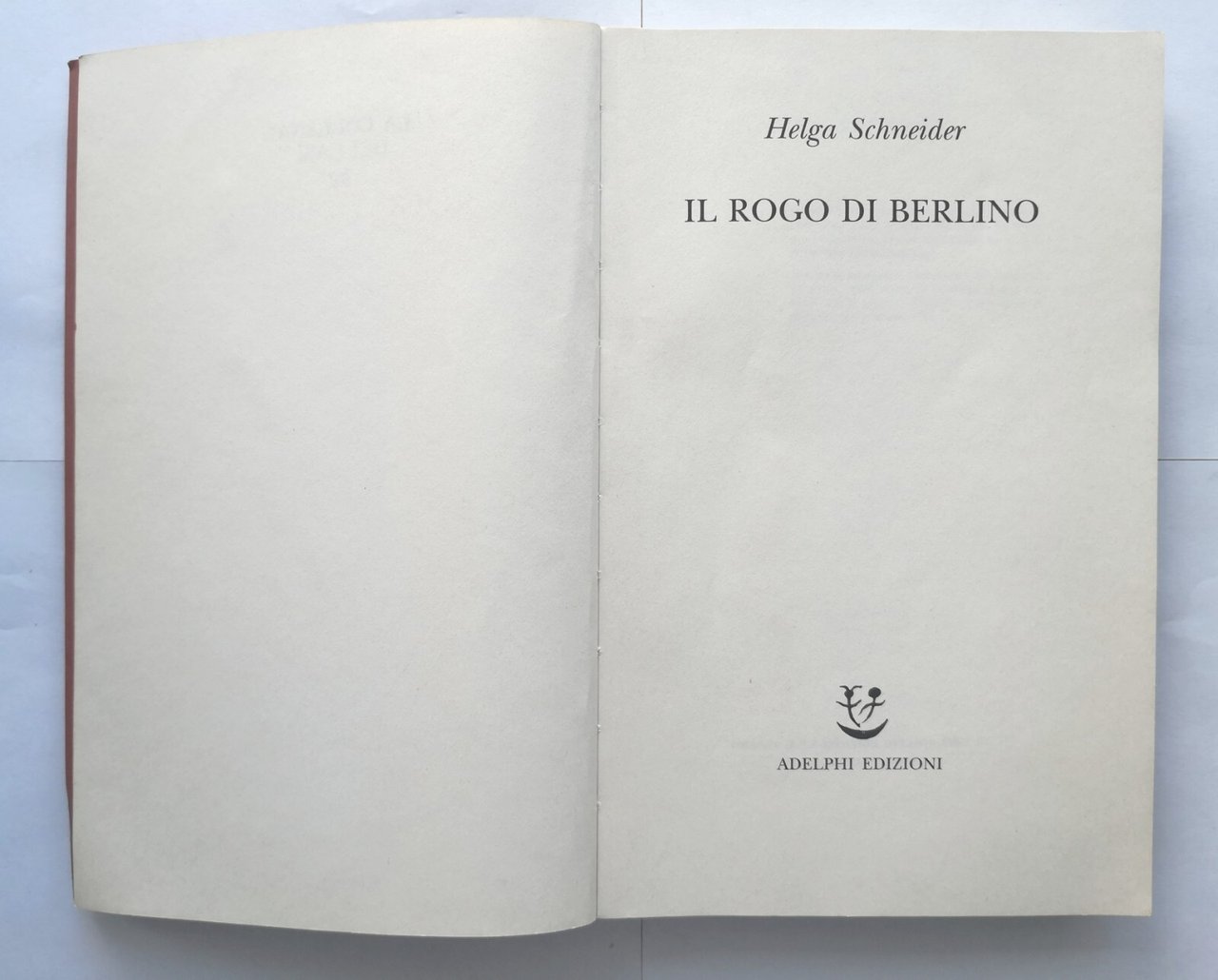 IL ROGO DI BERLINO di Helga Schneider 1995 Adelphi Libro romanzo