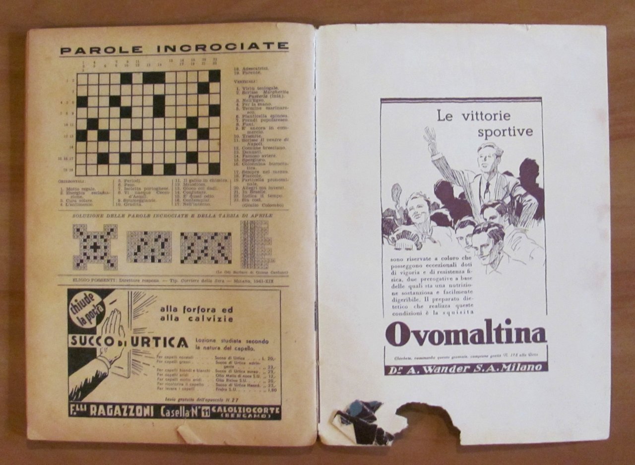 Copertina a colori e illustrazioni in b/n n.t. di Molino. Tipografia del Corriere della Sera - 1941. Brossura editoriale con lieve imperfezione alla cuffia inferiore del dorso e mancanza di una porzione di retrocopertina al margine basso. Interno Ottimo. 17x24; pp.93. Raro e in Buonissimo stato. , Molto buono (Very Good)
