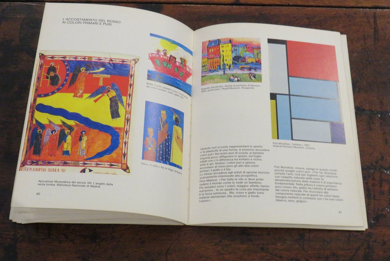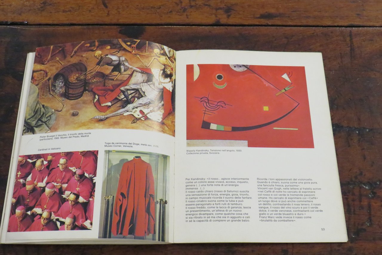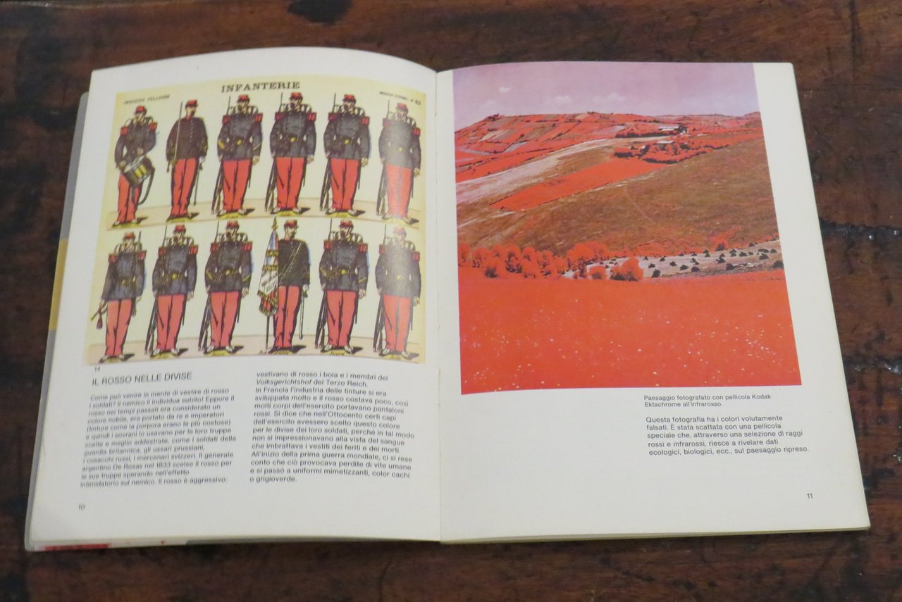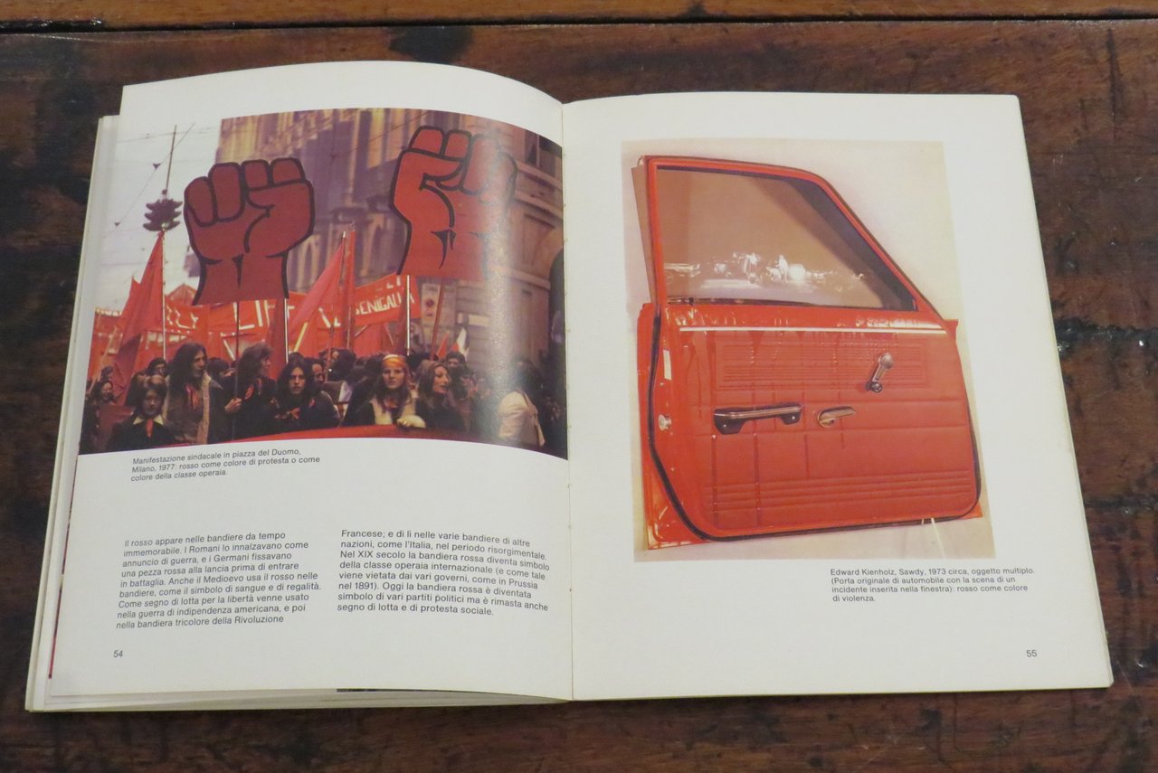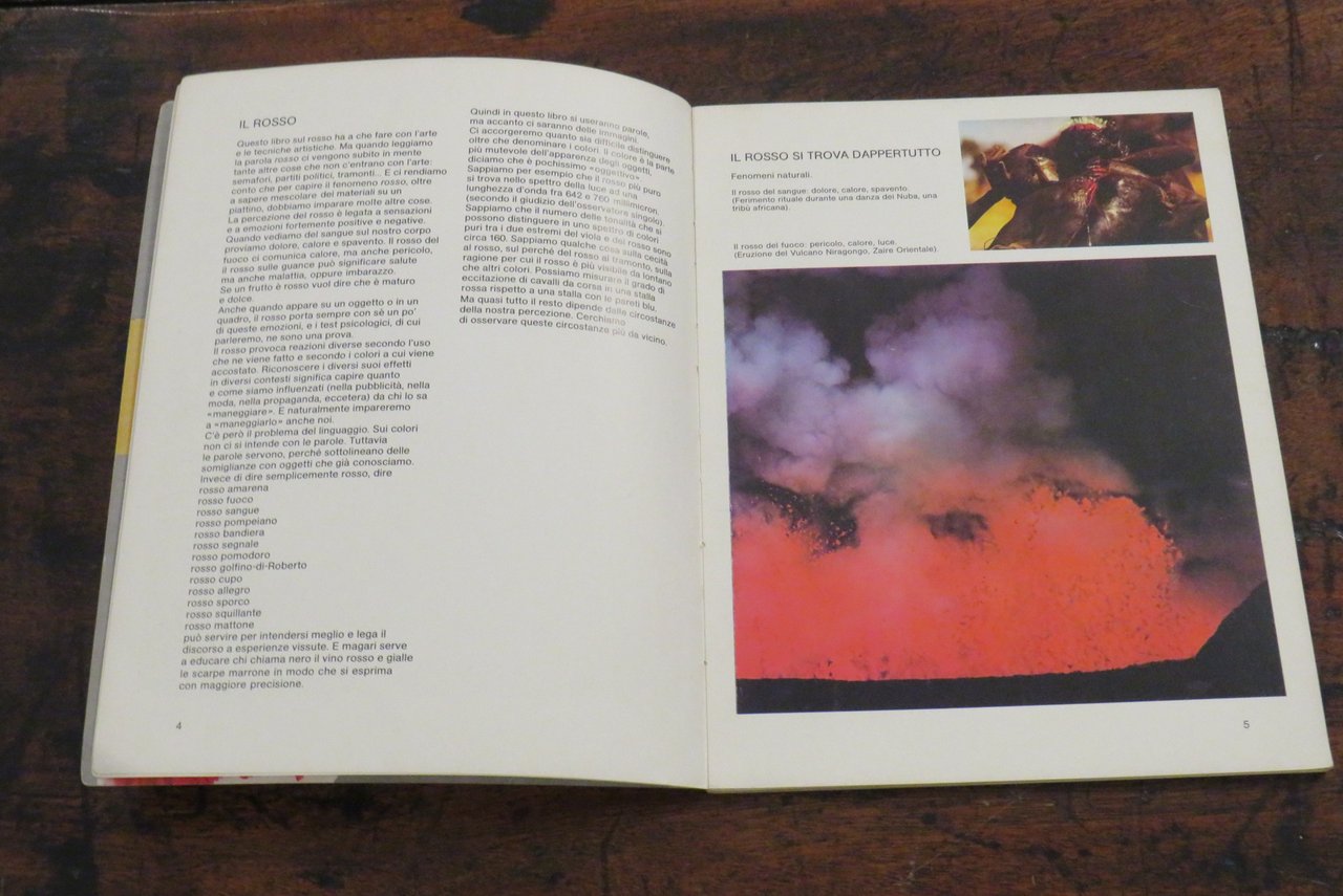 Bologna, Zanichelli, 1979. In -8 grande (mm. 190,2x250), pp. 63, con numerose illustrazioni a colori nel testo. Brossura editoriale illustrata a colori al piatto anteriore. A cura di Renate Eco. Collana "Giocare con l’arte", quaderni per l’educazione alla comunicazione visiva, N. 2, diretta da Bruno Munari. Manuale didattico. Libro stampato in Offset. La collana dell’editore Zanichelli nata nel 1979, ideata e diretta da Bruno Munari, a cui appartiene una serie di volumi monografici curati da diversi specialisti per l’insegnamento e l’introduzione alla comunicazione visiva come testualmente riporta Bruno Munari: "(…) Sperimentata per tre mesi nel 1977 alla Pinacoteca di Brera di Milano con qualche migliaio di bambini delle scuole elementari, successivamente verificata in incontri, riunioni e corsi con qualche centinaio di insegnanti anche di altre città, questa didattica per l’educazione alla comunicazione visiva, prende corpo ora in una collana che porta lo stesso nome del Laboratorio per bambini di Brera…". Questo volume è dedicato all’utilizzo e all’impiego creativo del colore rosso nell’attività del disegno e della pittura, con una ampia ricognizione di esempi e modelli didattici e con spunti che rimandano alla tradizione pittorica attraverso i secoli. Prima edizione. Scritta a penna al frontespizio ("Non catalogato"), lievi tracce di usura ai piatti della copertina, ma nel complesso ottimo.